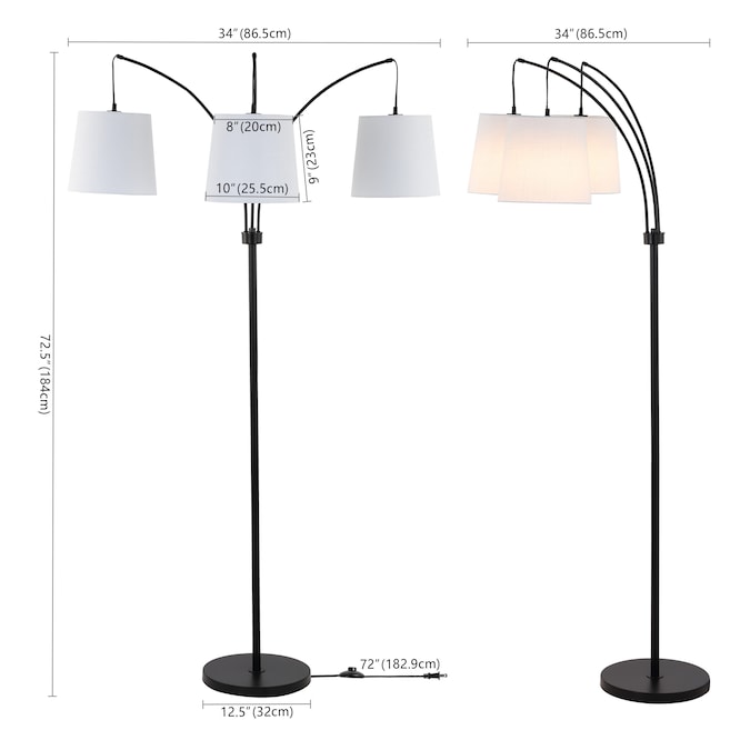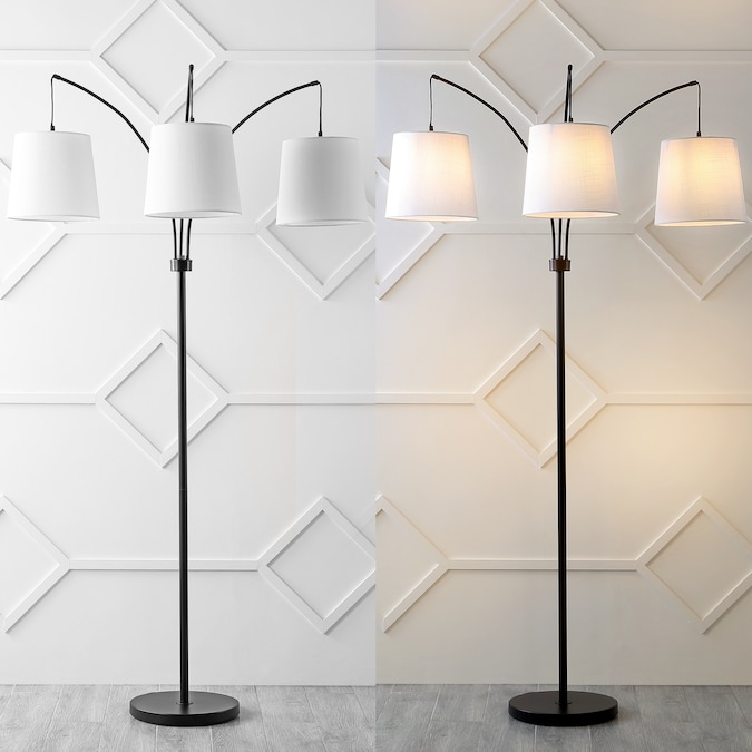 Inspired by mid-century design, our contemporary floor lamp features three arms that pivot to direct light exactly where it’s needed; Classic linen drum shades filter the light and add a traditional touch; Standing at 72-in tall, this modern, adjustable lamp makes a statement in your living room or home office