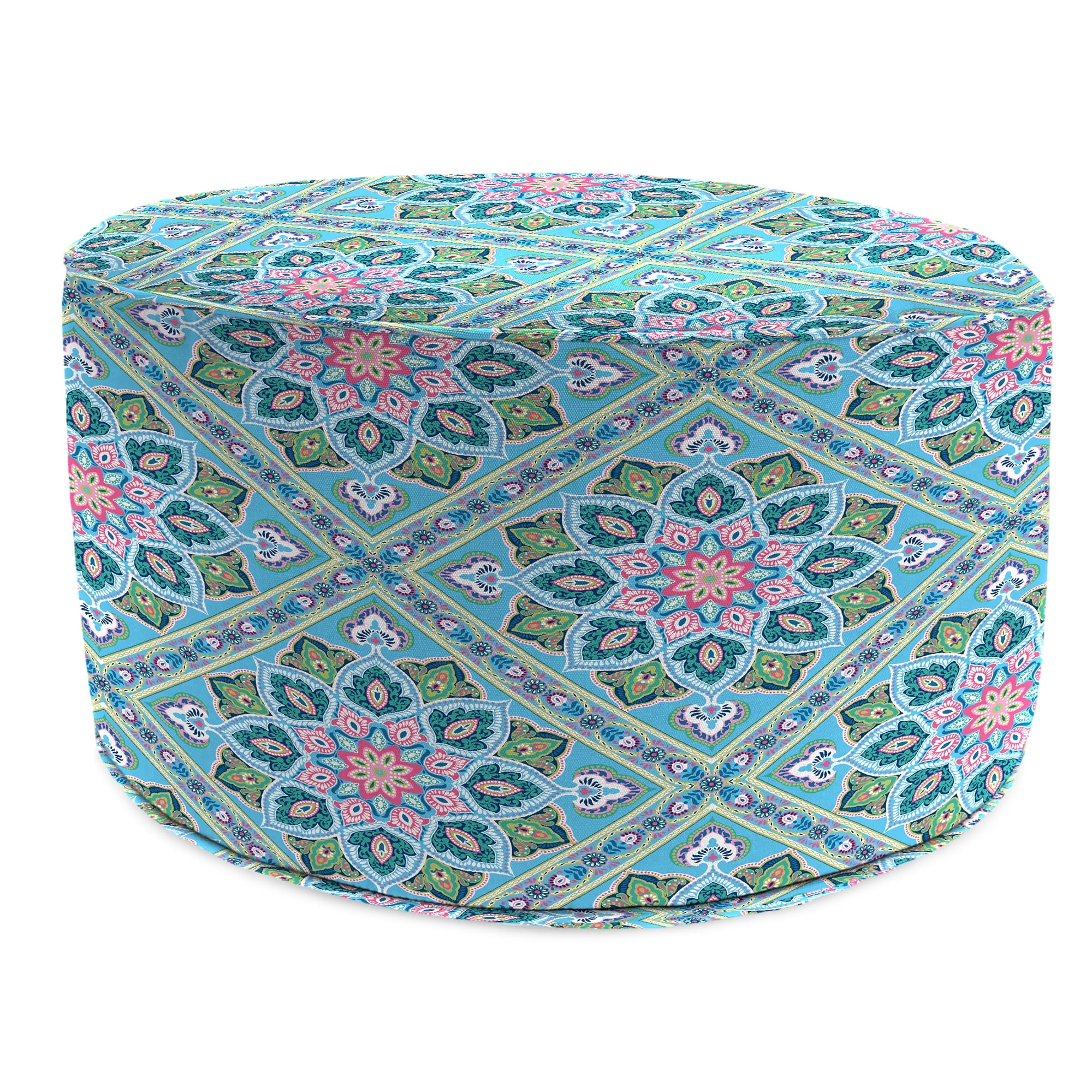 24″ width x 24″ length x 13.5″ height outdoor pouf ottoman RESISTS FADING, MILDEW, WATER AND STAINS. Designed for outdoor use, the durable fabric protects against damage from rain, spills or sunlight, with up to 500 hours of UV protection to prevent fading. WORRY-FREE FILL. Filled with lightweight, nontoxic EPS beads to create a safe and comfortable outdoor lounge area. COLOR CHANGES EVERYTHING. Add vibrance and style to your sunroom, front porch or patio with this outdoor pouf. MULTIPLE USES. Add a side table, seat or ottoman whenever and wherever you need with this versatile pouf. SIMPLE TO STORE. Compact design of the pouf makes for easy storage. EASY TO CLEAN. Keep your pouf looking new by spot cleaning with a soft cloth, mild soap and warm water. FINISHED LOOK. Boxed edges with a decorative welt give the pouf a stylish, structured appearance. Actual colors may vary from screen representation