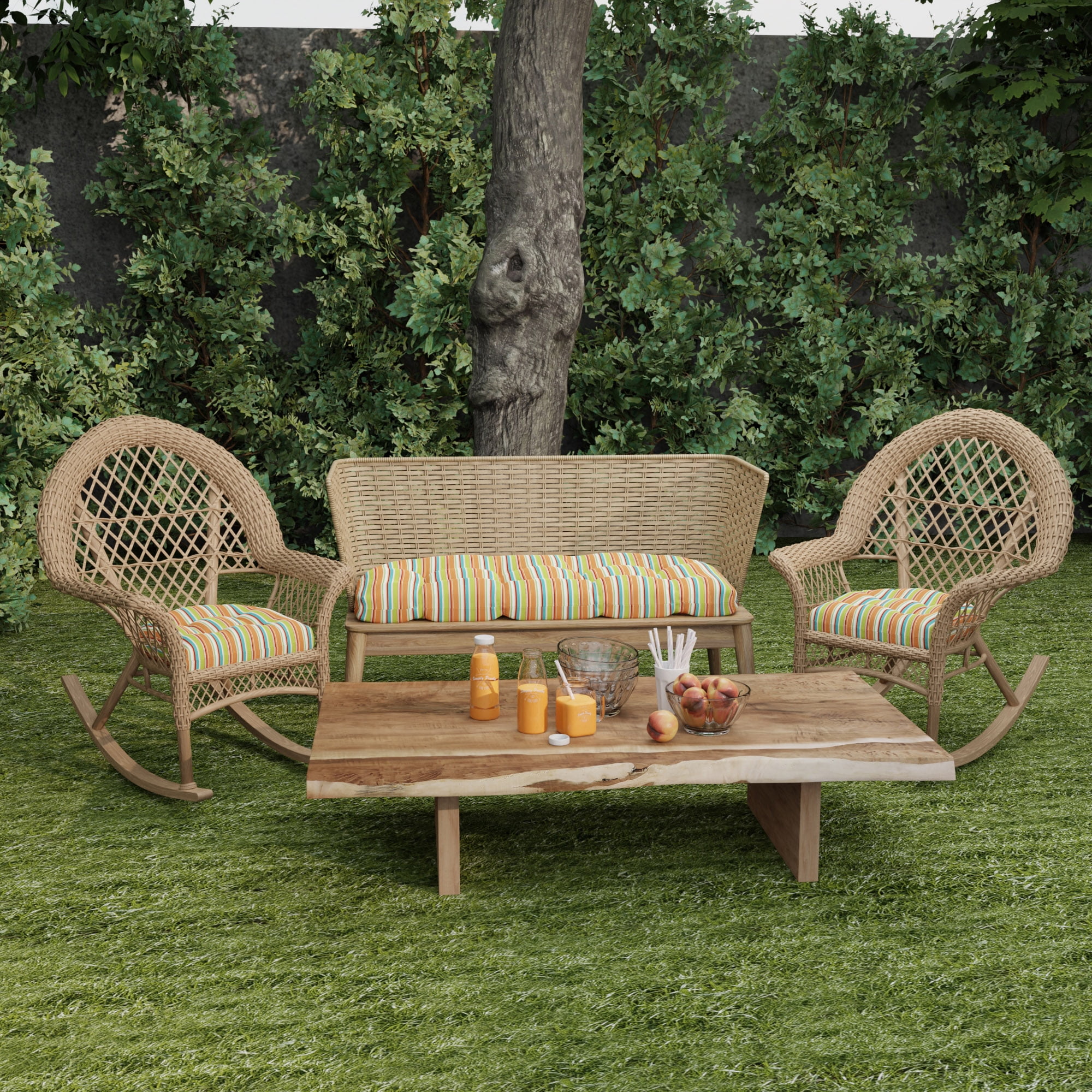 Jordan Manufacturing 3-Piece Covert Breeze Multicolor Stripe Tufted Outdoor Cushion Set with 2 Wicker Seat Cushions and 1 Wicker Bench Cushion