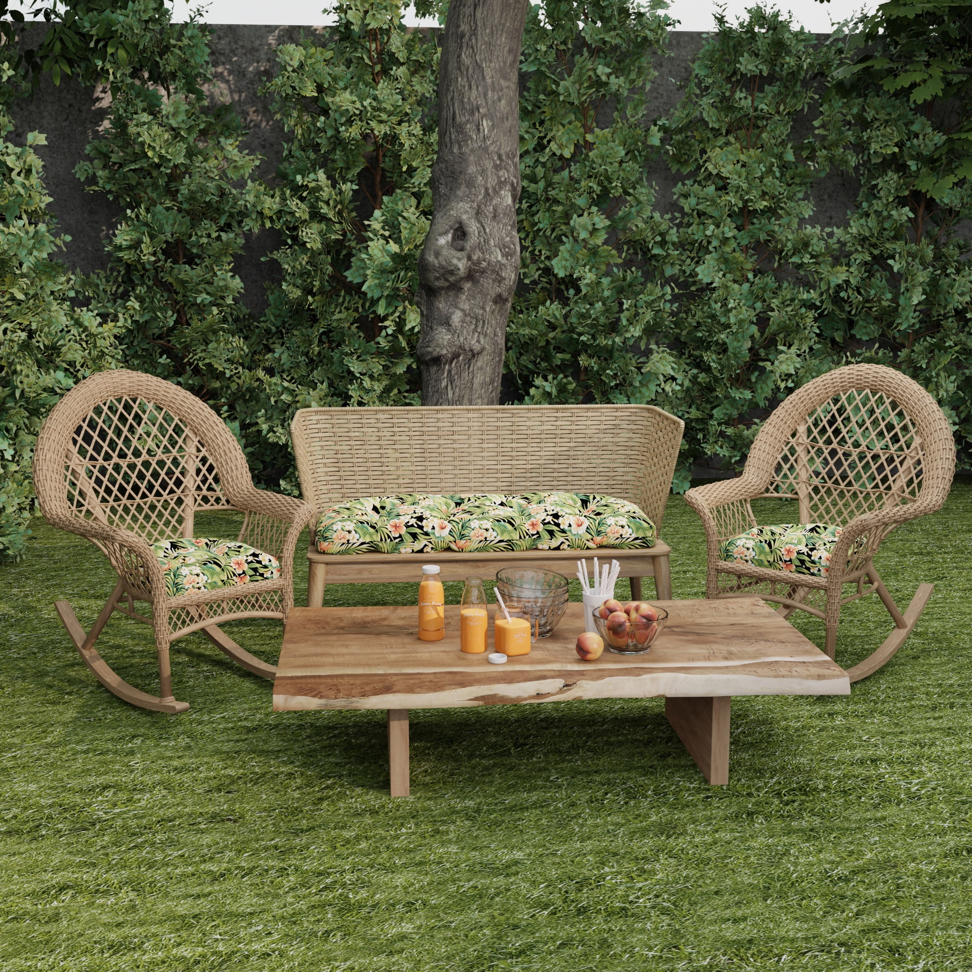 Jordan Manufacturing 3-Piece Cypress Midnight Black Leaves Tufted Outdoor Cushion with 1 Wicker Bench Cushion and 2 Wicker Seat Cushions
