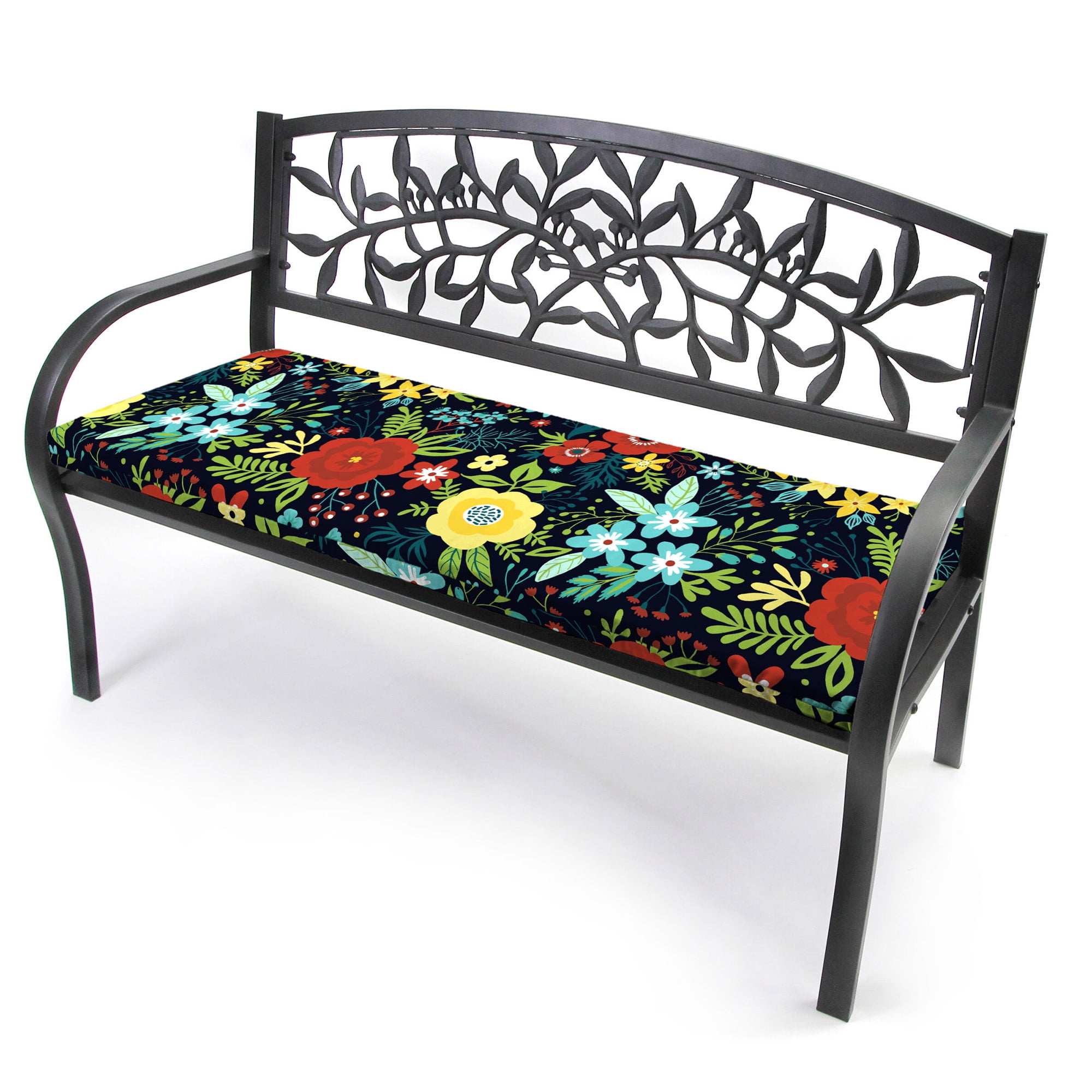 57″ width x 18.75″ depth x 3″ thick outdoor bench cushion RESISTS FADING, MILDEW, WATER AND STAINS. Designed for outdoor use, the durable fabric protects against damage from rain, spills or sunlight, with up to 500 hours of UV protection to prevent fading. COMFORTABLE AND DURABLE. Filled with layered polyester fiber to add soft support and retain the cushion’s shape. UPGRADE YOUR OUTDOORS. Add this bench cushion to instantly and effortlessly refresh the style of your sunroom, front porch or patio. MULTIPLE USES. Versatile outdoor cushion can be used for the seat or back of your bench for added comfort. SECURE TIES. Corner fabric ties keep the cushion in place on your bench, settee or glider. EASY TO CLEAN. Keep your bench cushion looking new by spot cleaning with a soft cloth, mild soap and warm water. VERSATILE DESIGN. Finished on the front and back so the cushion can be flipped for use on both sides. FINISHED LOOK. Knife edges create crisp corners and a modern appearance. BETTER FIT. Designed for a tailored fit on most standard outdoor benches, settees, swings or gliders. Actual colors may vary from screen representation