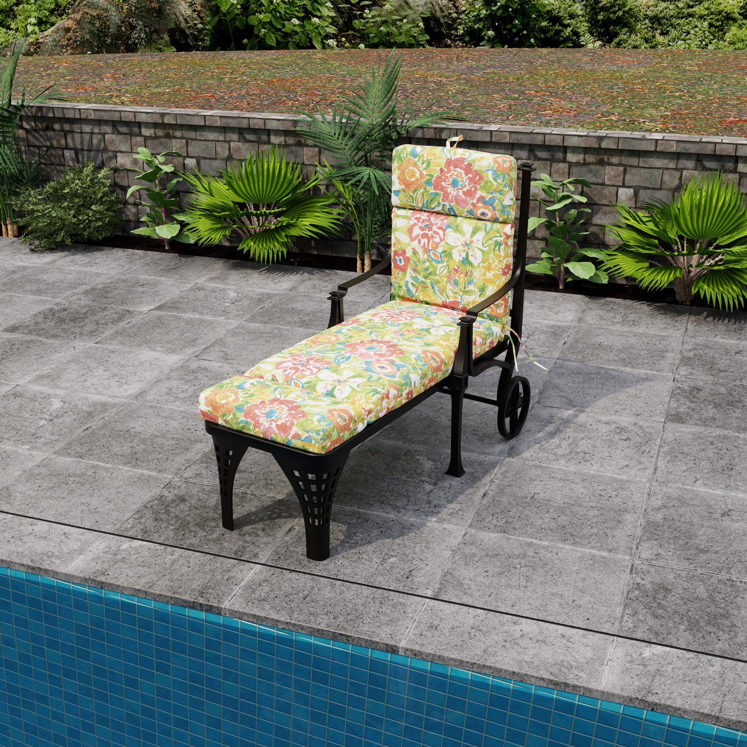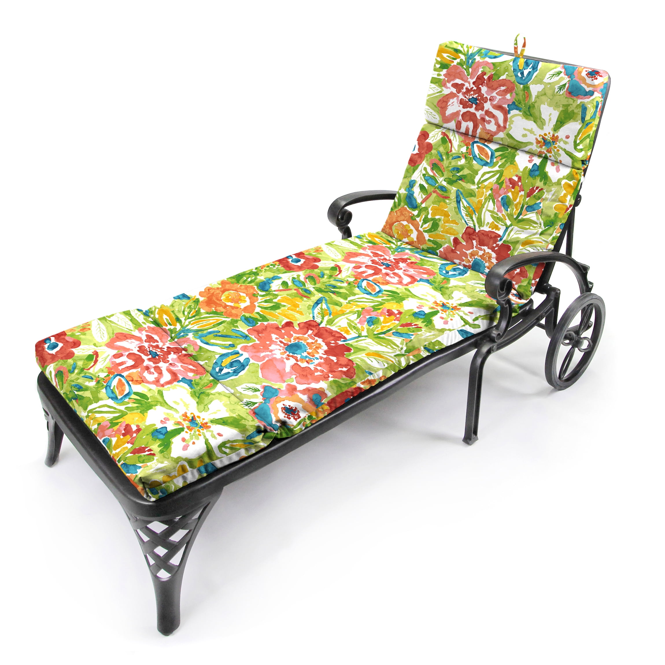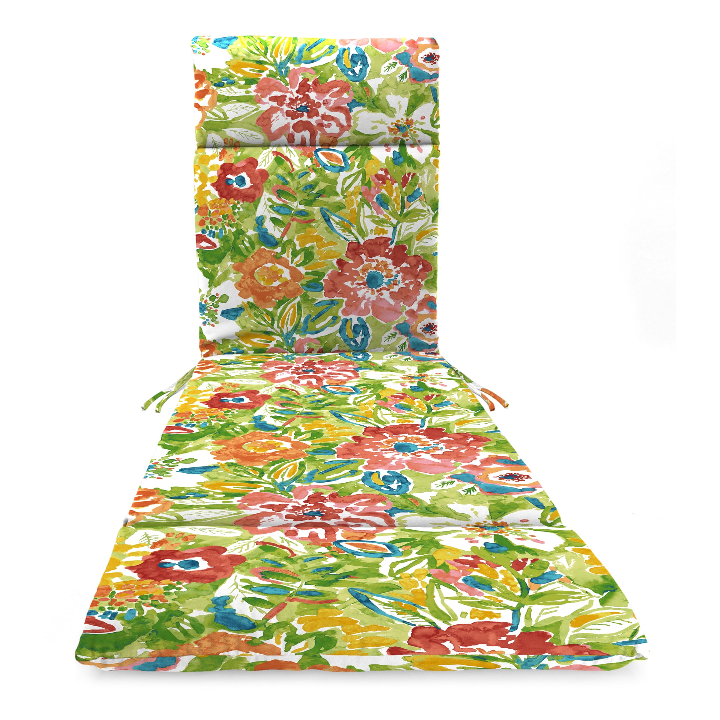 Jordan Manufacturing 72″ x 22″ Sun River Garden Multicolor Floral Rectangular Outdoor Chaise Lounge Cushion with Ties and Hanger Loop