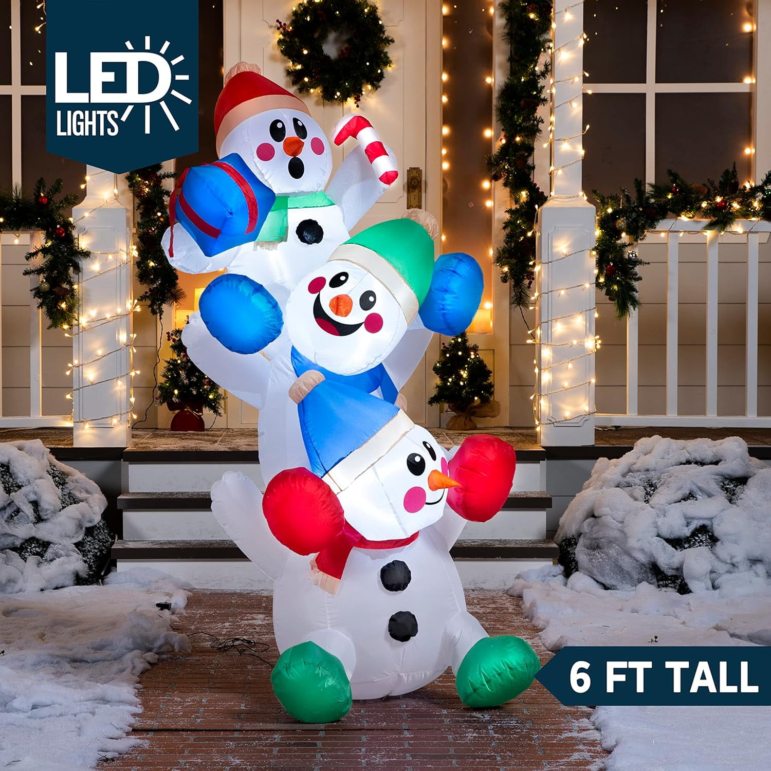 Joyfy 6ft Christmas Inflatables Snowman Outdoor Decorations,Stacked Snowman Christmas Blow Ups with Built-in LEDs for Holiday Party Garden Yard Lawn Decor