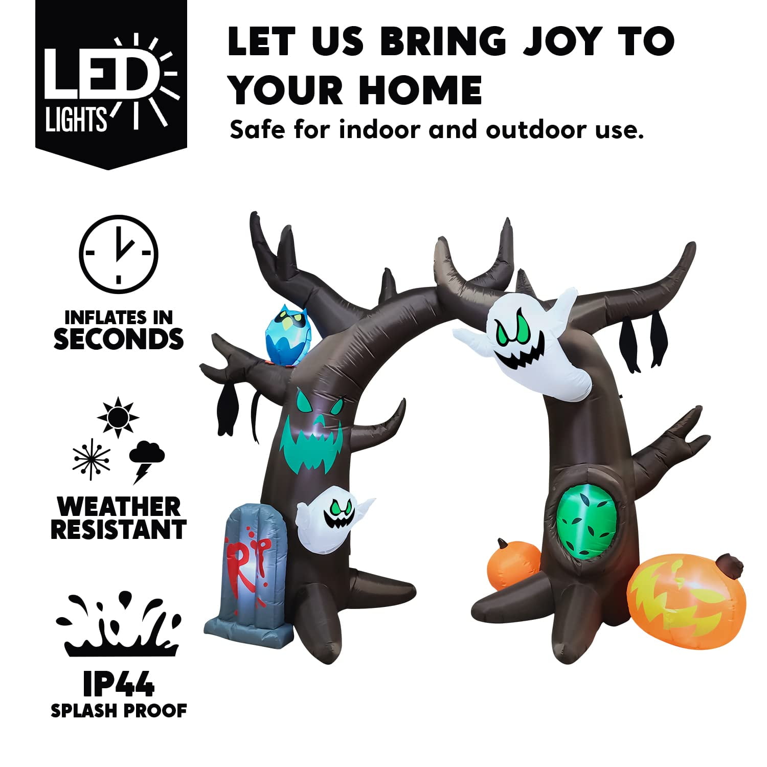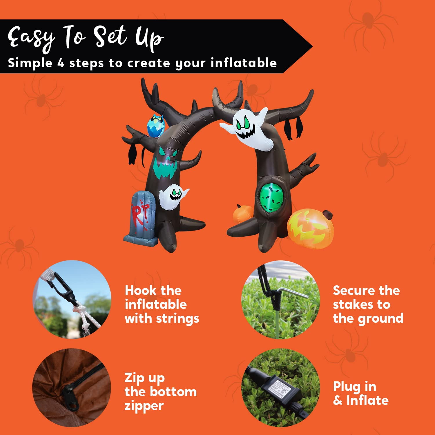 8 FT Tall Halloween Inflatable Scary Tree Archway with Build-in LEDs Inflatable Ghost Pumpkin Tomb Blow Up Inflatables for Halloween Party Indoor,Outdoor,Yard,Garden,Lawn Decorations.Perfect for Halloween outdoor yard garden decorations,trick or treat event decoration,Halloween night event,Halloween haunted house decorations,Halloween costume party decorations and more. Note: SYNCFUN is a sub-brand belonging to Joiedomi.