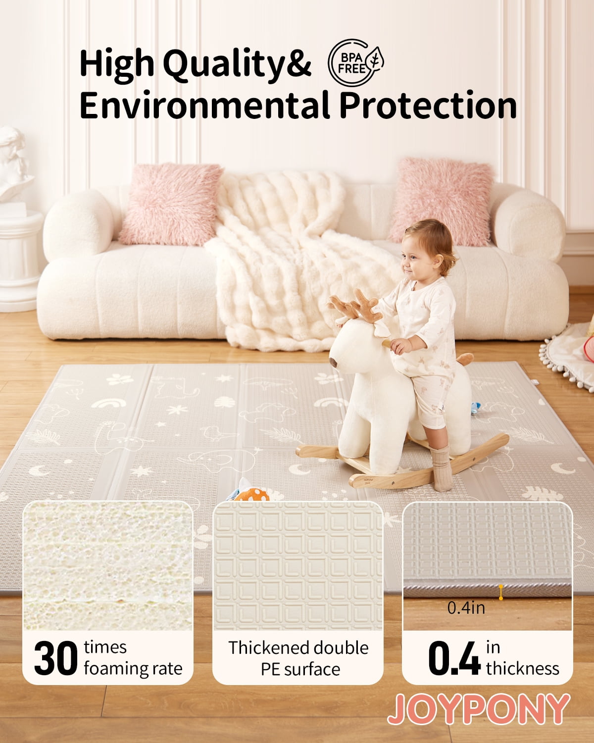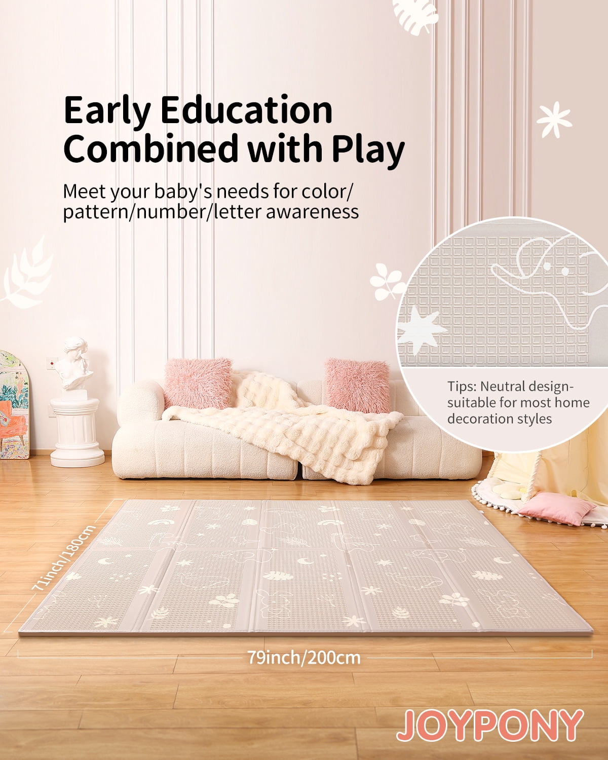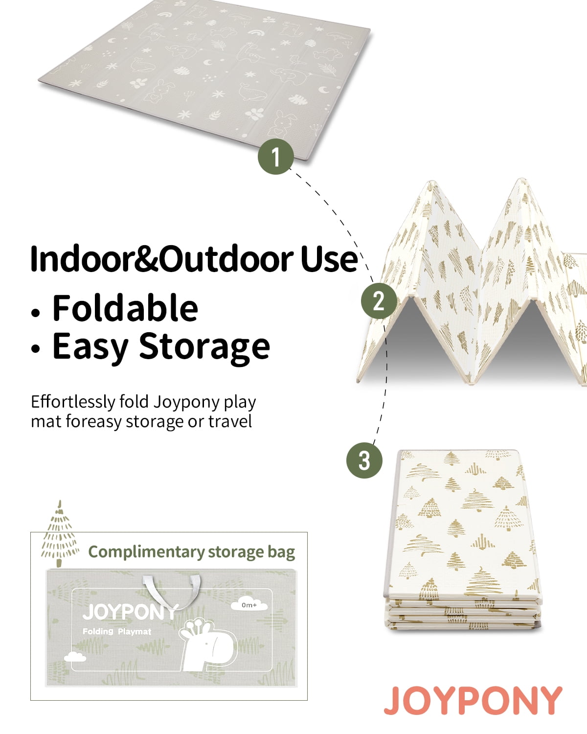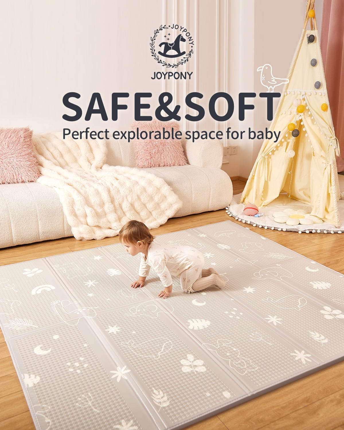 Joypony Baby Play Mat 79″ X 71″, Extra Large Foldable Play Mats for Babies and Toddlers, Waterproof & Anti-Slip Portable Baby Floor Mat for Tummy Time, Foam Baby Mat for Floor with Travel Bag