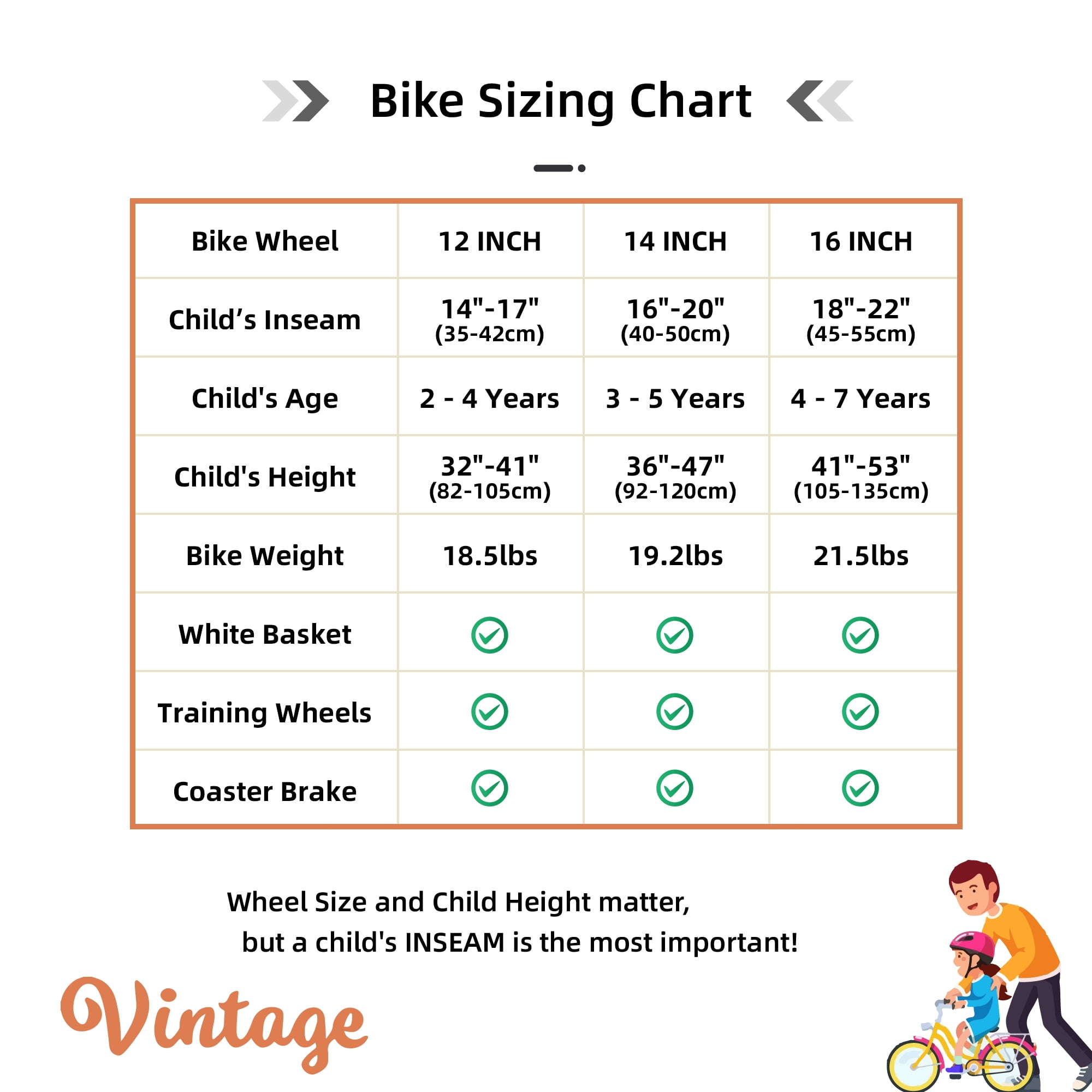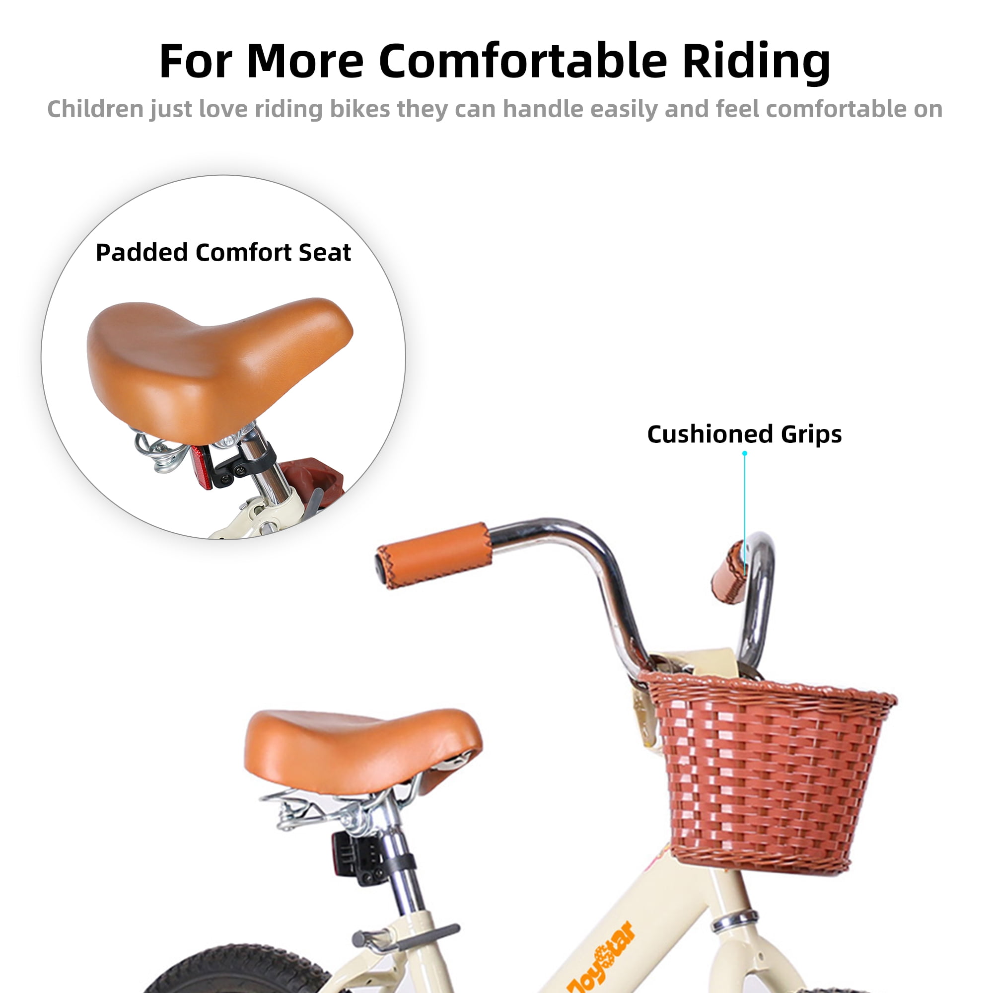 Design for Children – JOYSTAR Vintage Girls bike with 12-inch wheels is designed for toddlers 2-4 years old. This bike has adjustable saddle & stem height for easy riding. it is perfect for riding to the park or riding on the sidewalk SAFE & DURABLE – Coaster brake makes it easy to learn. Enclosed chain guard prevents your little one touching the chain. Durable hi-ten steel construction provides long-lasting reliability, backed by a LIFETIME warranty on the frame. Children Will Love It – Removable training wheels and soft leather grips keep it easy for her to learn and feel comfortable behind the wheel. The bicycles come with basket and DIY Decal stickers adding more fun for your child riding Easy to Assemble – The bike is 85% assembled and comes with the basic assembly tools and only a few parts need to be added to the bike, which takes approximately 20 minutes. Customer Service – With JOYSTAR’s durable steel frame and puncture-proof tires, you don’t have to worry about damage or maintenance. The toddler bike comes with 85% assembled body and the basic assembly tools, perfect customer service