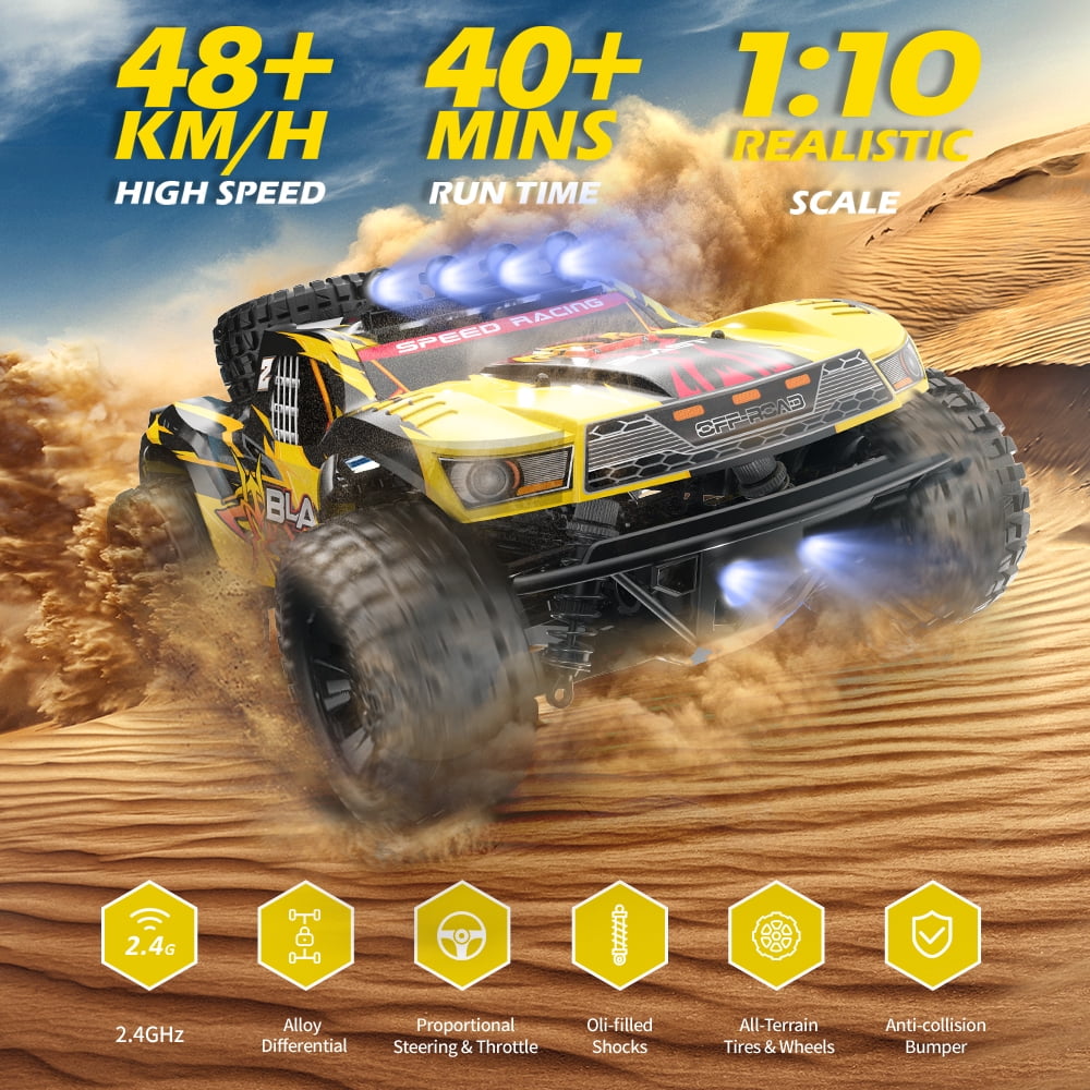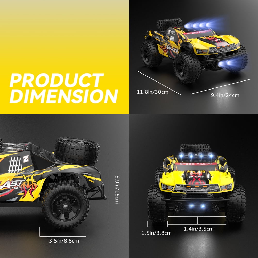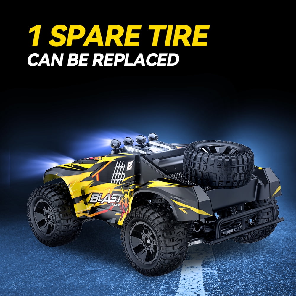 JoyStone 1:10 Large Remote Control Truck with Lights, Fast Short Course RC Car, 35+MPH 4×4 Off-Road Hobby Grade Toy Monster Crawler Electric Vehicle with 2 Rechargeable Batteries for Adult Kid Boy. Equip with 5 tires which can help you tackle any terrain.High quality PVC material car shell, the super anti-throw ability allows it to go through on-road, off-road and any rugged road!