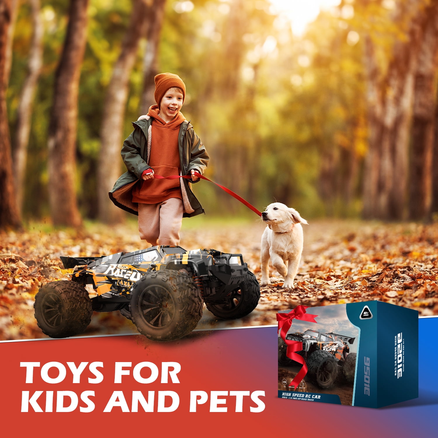 The perfect 4WD large racing car is a must-have for boys, girls, adults, and off-road lovers! The professional transmitter of the radio remote control car brings you a far superior experience.Professional Motor -390 high-speed motor, bring you an unimaginable ultimate experience.High RPM burst out continuous strong power and reach a top speed at 30 MPH.Equipped with 4 metal shock absorbers that easily cushion jumps and rough terrain, making the body of the off-road vehicle more flexible and providing protection against collisions. All-wheel drive can provide maximum traction during acceleration. With TWO high capacity batteries and the USB charger, long life and fast charging. It will extend the driving time up to 40+minutes, which depends on the operation. Easy to control and can go all terrains. Good for indoors and outdoors. Race with your family or friends and join in the JoyStone fun!