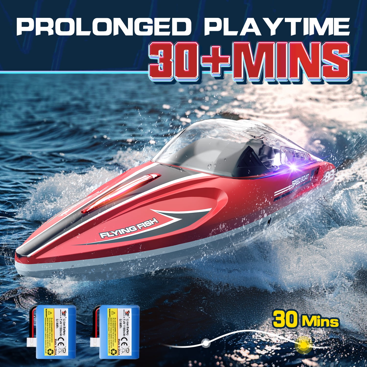 Rechargeable RC Boat – Remote control high-speed boat equipped with remote control, 2 batteries, screwdriver, lock nut, wrench, propeller, support frame, lubricant, USB charger, anti-collision head. High-speed Remote Control Boat – RC boat for adults and kids races across the water up to 25+ mph. This high-speed boat equipped with a 4-channel 2.4 GHz remote with a 150-meter signal range. Low Battery Alarm Function – When your ship with low voltage, the controller will beep to remind you to let the boat ship back immediately since it will keep you from losing control of it. Capsize Recovery Function – Our Remote controlled boat is easy to control. The self-righting design keeps your boat in the correct direction when it capsizes. Double-hatch design and capsize recovery make this the best choice for any level RC enthusiast. Perfect Gifts For Kids And Adults – The velocity high-speed RC boat is one of the hardest and fastest freshwater remote control boats for kids ages 14 and up. NOT for saltwater use.
