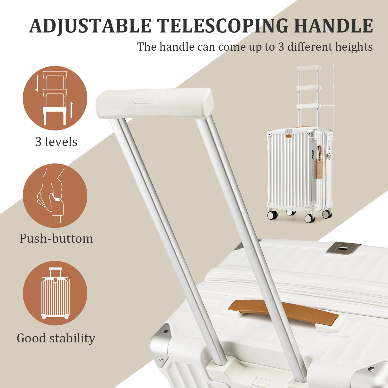 ✅【4-piece luggage set】The luggage set provides 20-inch carry-on luggage, 24-inch medium checked luggage, 28-inch large checked luggage, and 1 flight boarding pass holder. ✅【Smart Luggage】20-inch carry-on suitcase equipped with USB/USB-C charging port (power bank not included). Keep your electronic devices running (excluding 24″ and 28″ travel luggage as power banks are strictly prohibited in checked luggage). ✅【Hands Free】The newly designed cup holder is perfectly integrated into the structure of the spinner suitcase, providing you with a convenient option to place your cup on the road without worrying about it tipping or slipping. ✅【TSA Lock & Spinner】Our luggage set comes with TSA approved locks to provide secure luggage protection during travel. Choose our 360° universal silent wheels for smooth, quiet and convenient luggage handling. ✅【Extra Expansion Space】The 20-inch and 24-inch luggage cases are expandable, providing extra space to maximize your luggage capacity. (The 28-inch large suitcase does not have expansion capabilities). ✅【Practical additional functions】The hook on the front of the suitcase can stably carry items of a certain weight and is used to hang various items, making your journey more convenient. ✅【YKK Zipper and Telescopic Handle】You can easily open and close the suitcase without worrying about the zipper getting stuck or damaged. Telescopic handles make pushing and pulling luggage easier, reducing stress on your back and arms. Customize the height for a comfortable carrying position.