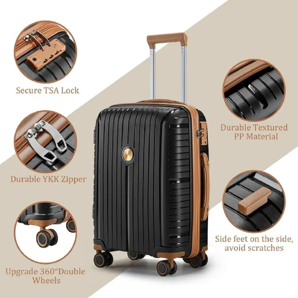 5 Piece Luggage Set: Includes 20″, 24″, and 28″ suitcases, along with 1 travel bag and 1 toiletry bag, fully equipped for all your travel needs Expandable Capacity: Features an expandable layer that adds 20% more space to your rolling luggage available for 20″ carry-on and 24″ check-in suitcase Secure Travel: Constructed from lightweight and durable ABS material, equipped with a TSA lock to protect your privacy and keep your belongings safe Easy Maneuverability: Designed with eight free-rolling wheels that rotate 360 degrees and a retractable telescoping handle for effortless navigation through busy airports Spacious Interior: Dual storage areas with compression straps to keep your clothes and other items secure during travel
