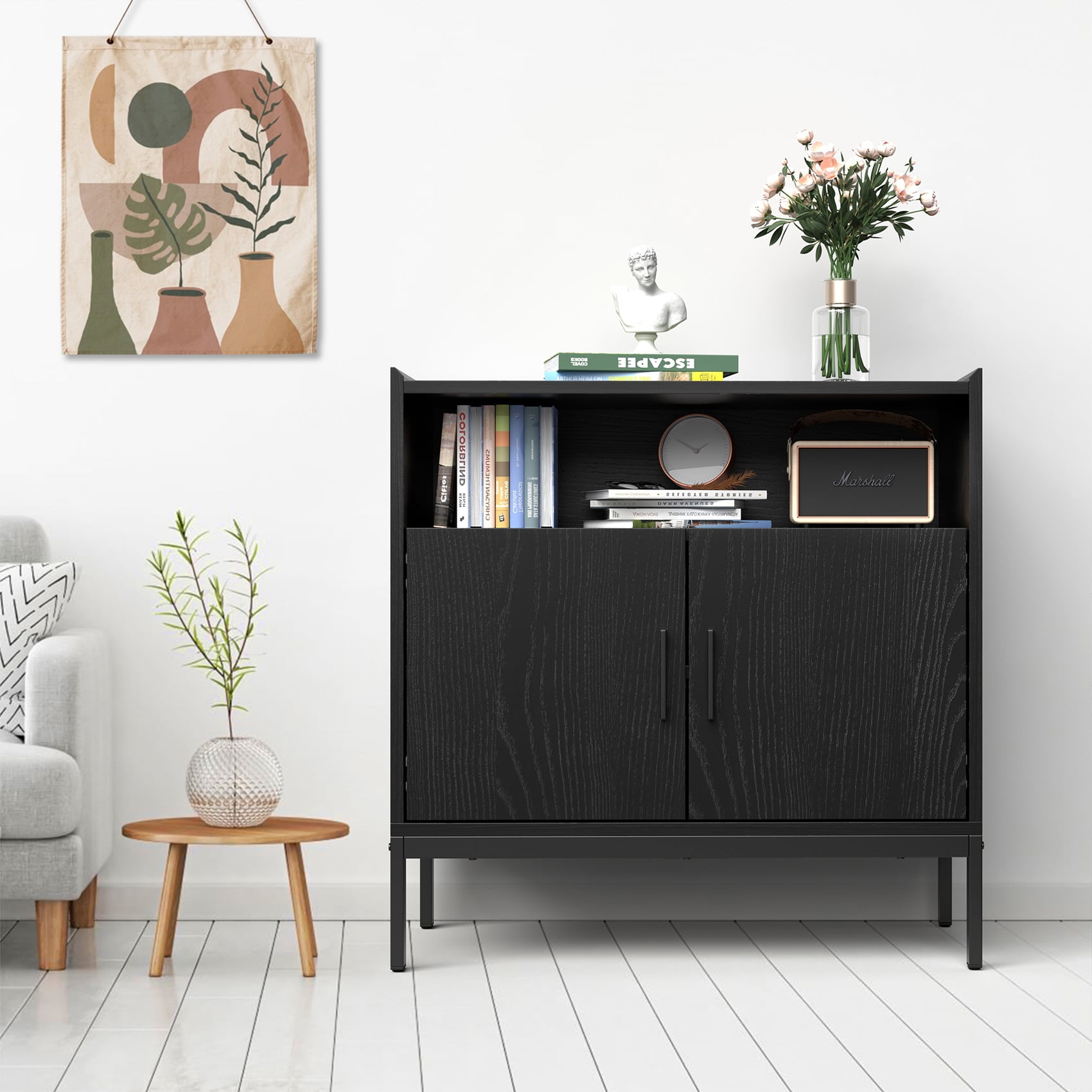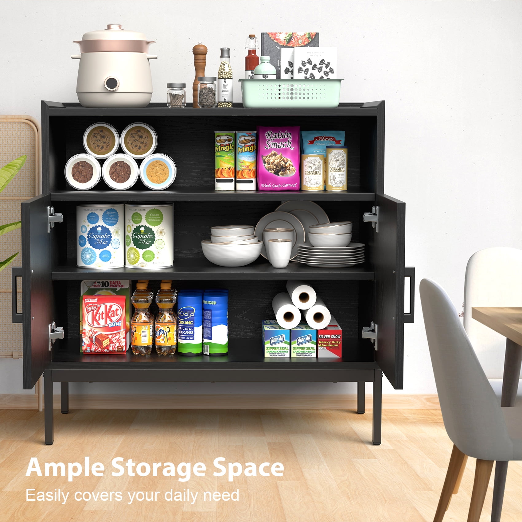JOZ Kitchen Sideboard Buffet with Storage, Coffee Bar Cabinet, Entryway Accent Cabinets, Black