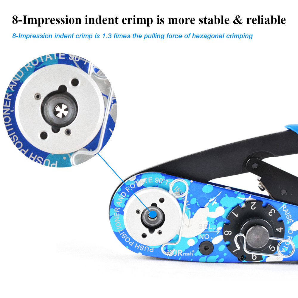 【Wire range】: 20-32awg, according to M22520/2-01 Standard design, Adapts K、KA、SK2/2、HD series positioners 【Structure upgrade】: Small size, light weight, compact structure, only 225g/0.5lb, can operate comfortably with one hand, and the upgraded solid structure can provide reliable crimping guarantee 【8 selector knob】: Positive crimp depth is controlled by an 8 position selector knob conveniently located on the tool frame. The precision ratchet controls cycling of the tool in both directions of handle movement. This assures the same accurate crimp every time. 【Personalized customization】: unique ink-splashing craftsmanship, each tool has a different design. The distinctive design makes AS2 stand out among all tools and become the most recognizable tool in the toolbox.