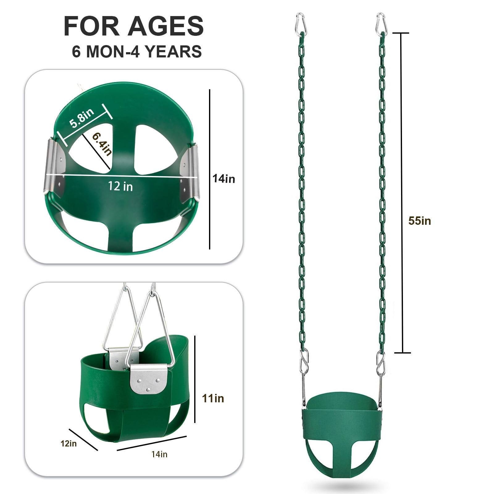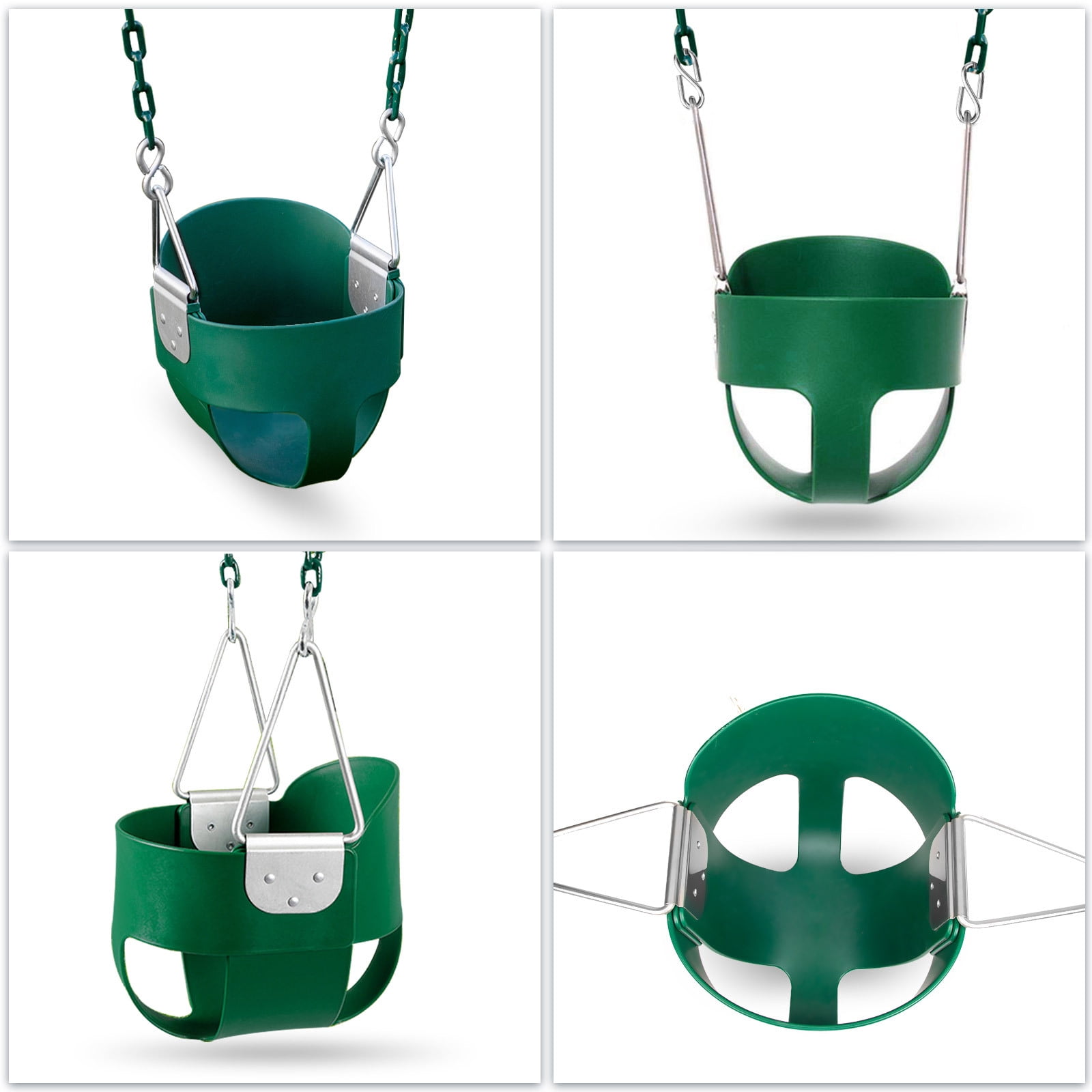 JUGAAD LIFE Toddler Swing Seat High Back Full Bucket Baby Swing with Coated Chain Pinch Protection and Carabiners for Easy Install Swing Sets for Outside Outdoor Playsets – Green