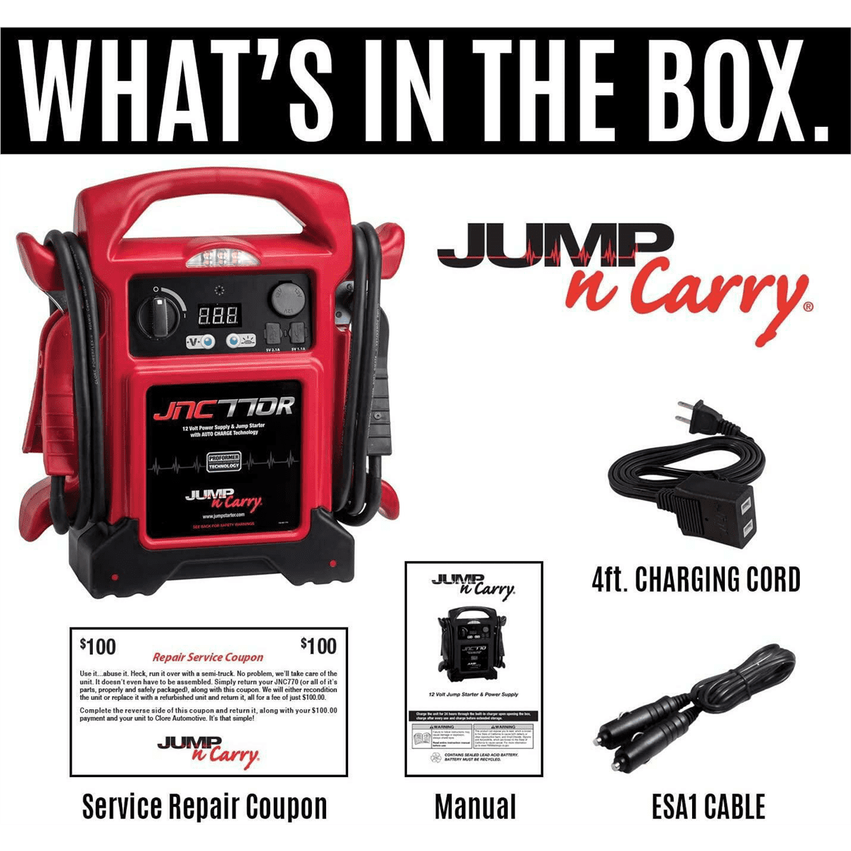 1700 Peak Amps 425 Cranking Amps Clore PROFORMER battery technology 68 Inch #2 AWG welding cable leads PowerJaw[TM] clamps