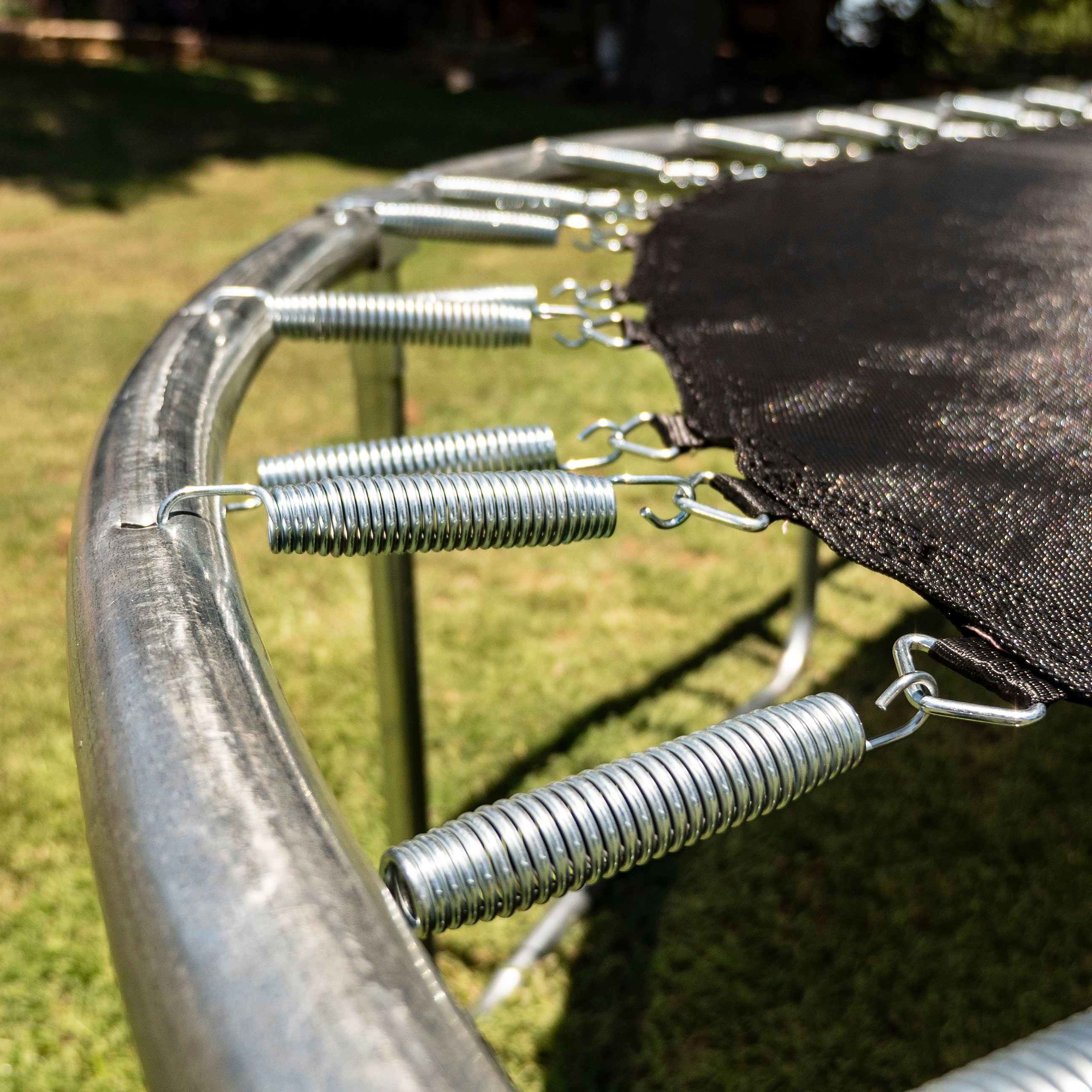 Spacious Oval Design: Offers ample jumping area for multiple users. Dual Basketball Hoops: Includes two hardback hoops and a mini ball for added entertainment. Galvanized Steel Frame: Durable and rust-resistant for long-lasting use. Heavy-Duty Netting: Ensures safety by keeping jumpers securely contained. Padded Enclosure Poles: Eight poles provide extra protection and support. Curved-Shaped Door: Facilitates easy and safe entry and exit. High-Performance Springs: 84 six-inch springs deliver excellent bounce. Sturdy W Legs: Six W legs enhance stability during play. Maximum User Weight: Supports up to 200 lbs for safe jumping fun.