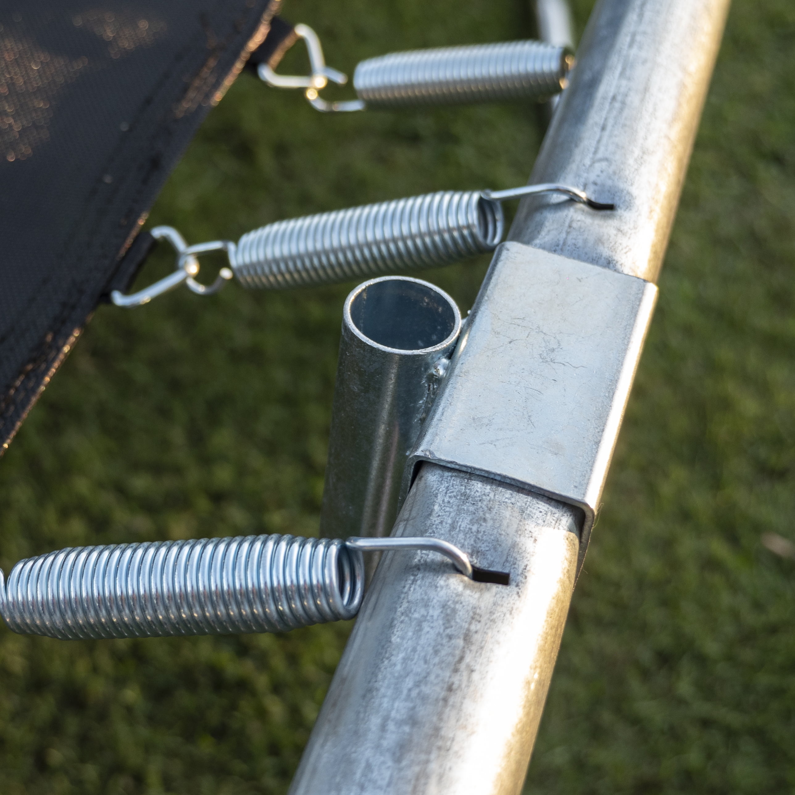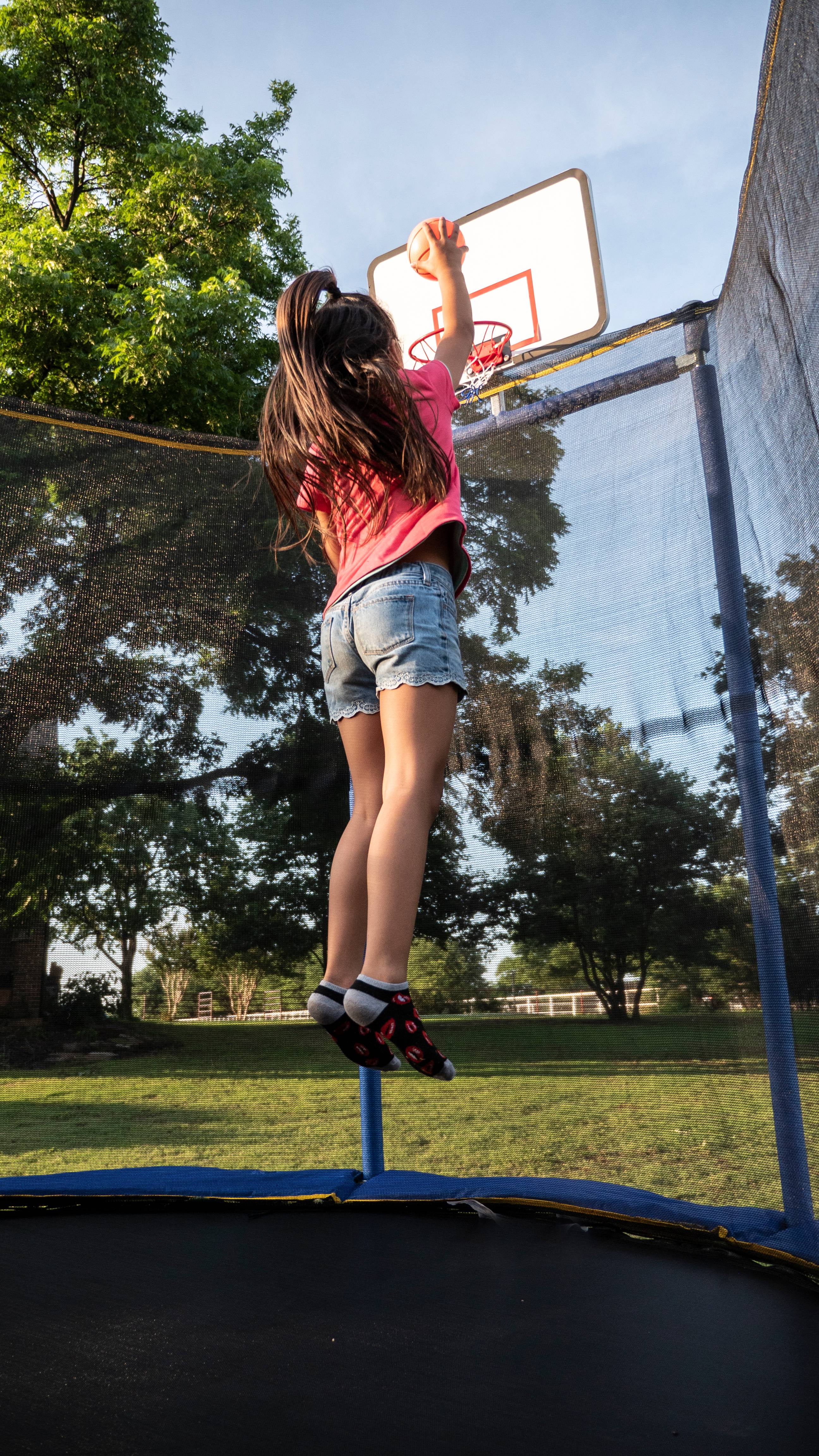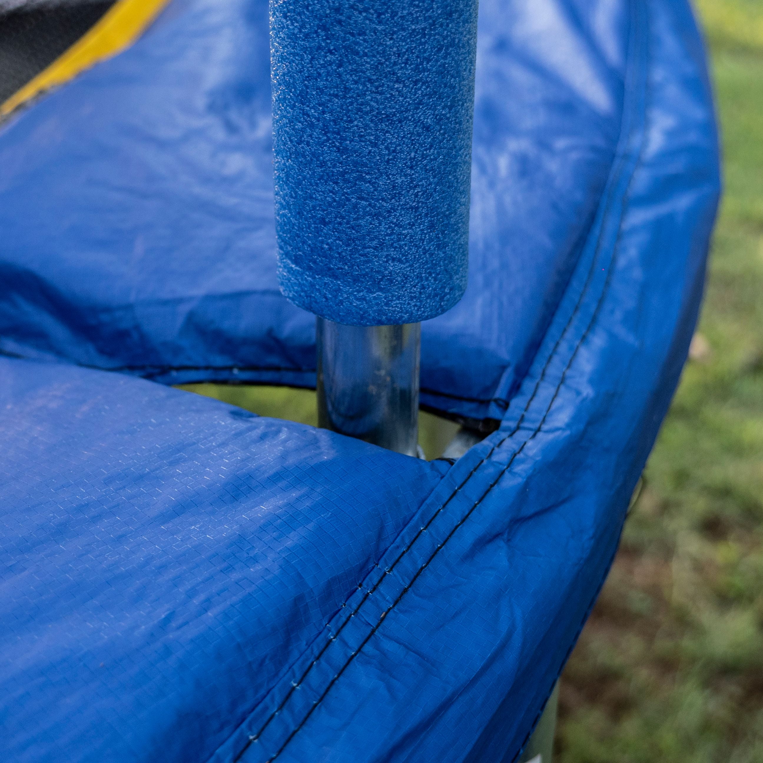 Jumpking Oval 10′ x 15′ Trampoline, with Two Basketball Hoops, Blue/Yellow