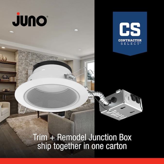 With the 2 Pack Juno® Podz 6-inch LED canless downlights ordering, stocking, and installing is easier than ever before as the trim and remodel junction box are packaged altogether in one single carton. Juno Podz™ combines a low profile, IC rated mechanical form of less than 3” tall with the appearance of a deeply regressed downlight that installs directly into the plenum, eliminating the need for a traditional recessed housing. Additionally, the Podz LED downlights allow for flexibility in lumen and color temperatures by providing switches directly on the fixture to toggle between 700 lumens, 1000 lumens or 1200 lumens and 27K, 30K, 35K, 40K or 50K color temperature options, including a WarmDim® (2850K-1900K) feature that provides the warmth and ambiance of traditional incandescent light sources. The dimmable LED light engine features cutting-edge color mixing technology which delivers exceptional color rendering at all LED color temperatures and is offered in 120-volt.