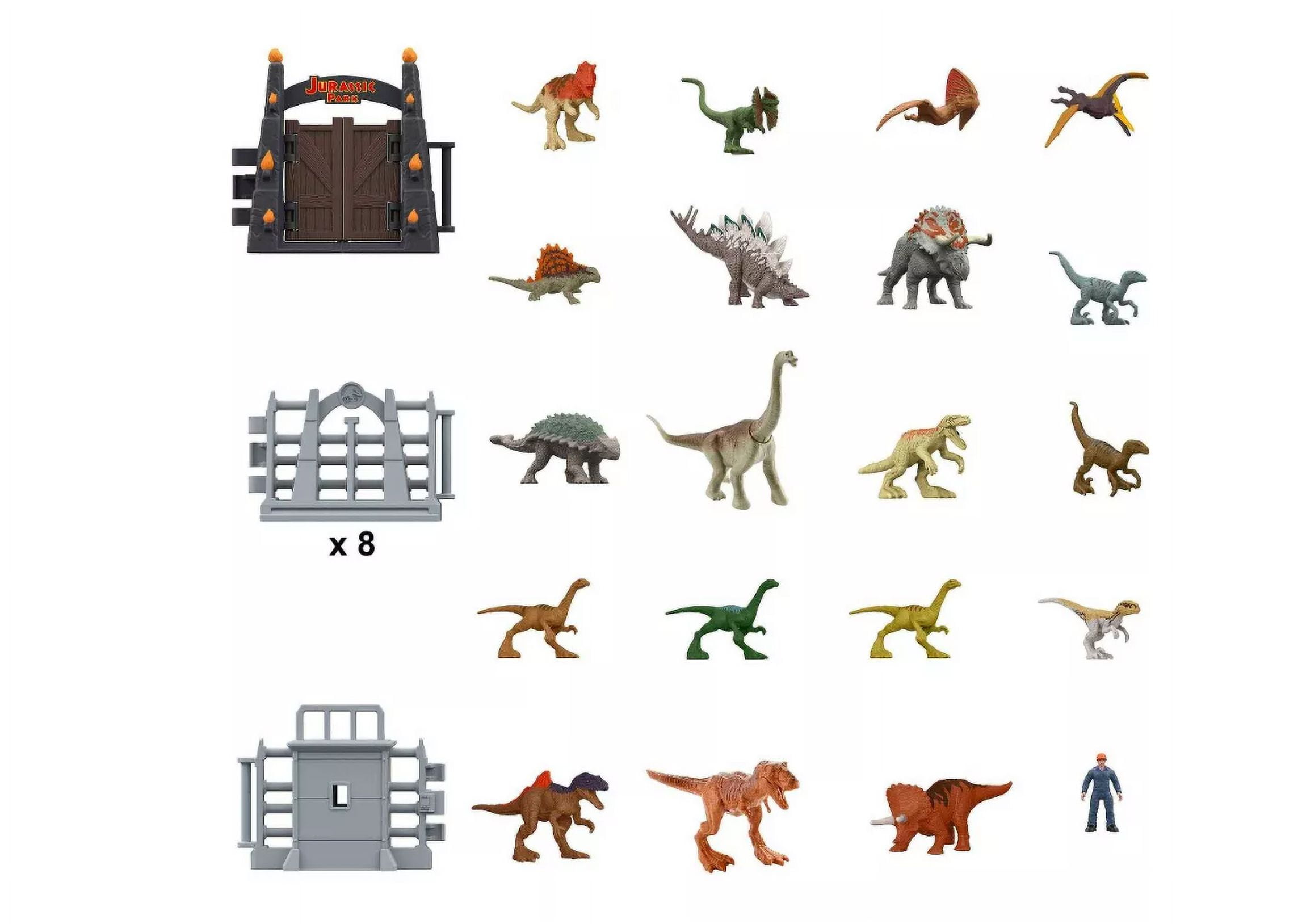 Jurassic World 30th Anniversary Holiday Advent Calendar Mini Dinosaur Figure Playset High live Jurassic Park! With this advent calendar to celebrate the original film, children can bring the adventure and thrill home. The packaging and figures revolve around the film Merry Christmas! With a door for each of the 24 days until Christmas, this advent calendar shortens the waiting time with great Jurassic World surprises Discover a surprise every day! Is there a mini dinosaur, a human figure or one of the goal pieces that create an exciting play area for the holidays? The advent calendar contains a total of 30 pieces, including the well-known entrance gate of Jurassic Park Build a playset! Collect all the pieces and build a mini playset. The parts are designed to scale to the almost 3 cm tall human figure