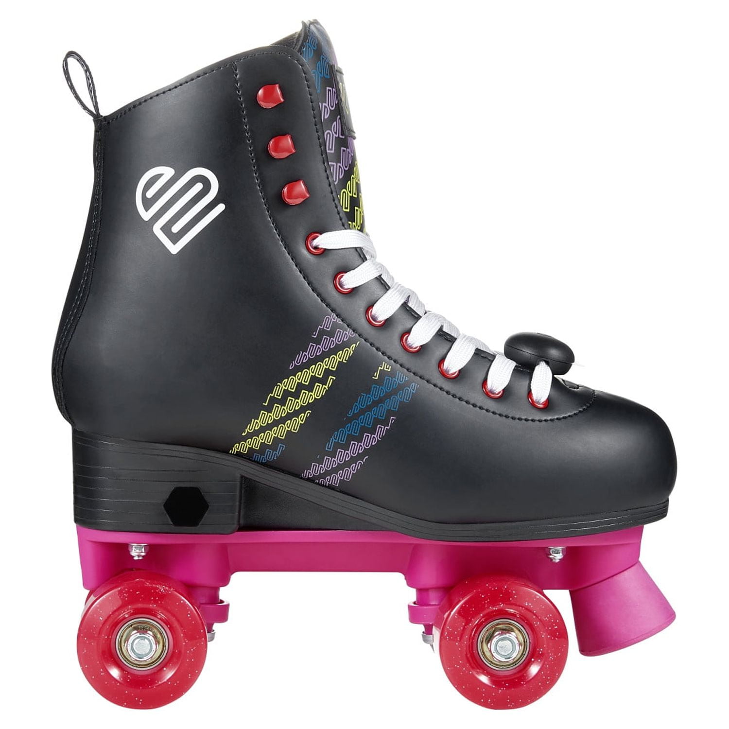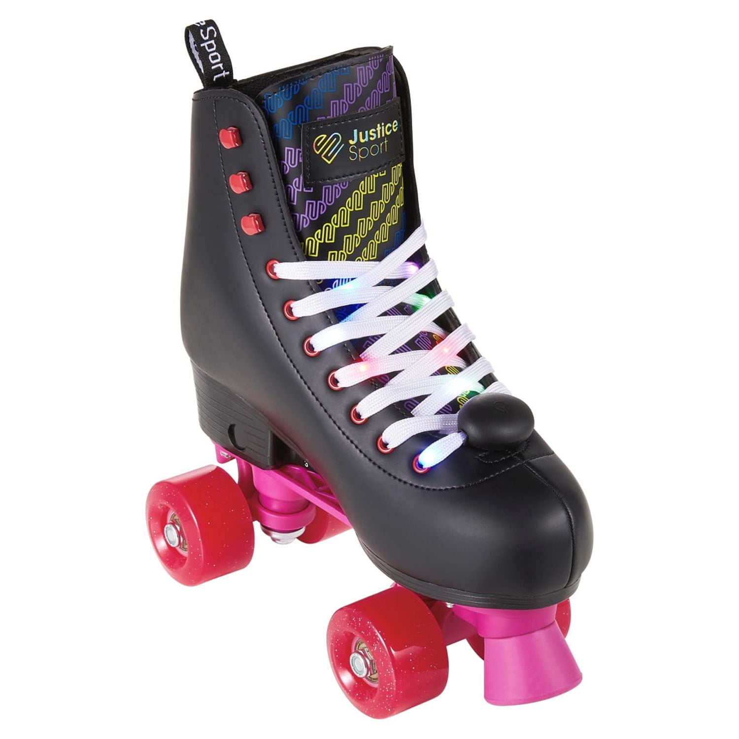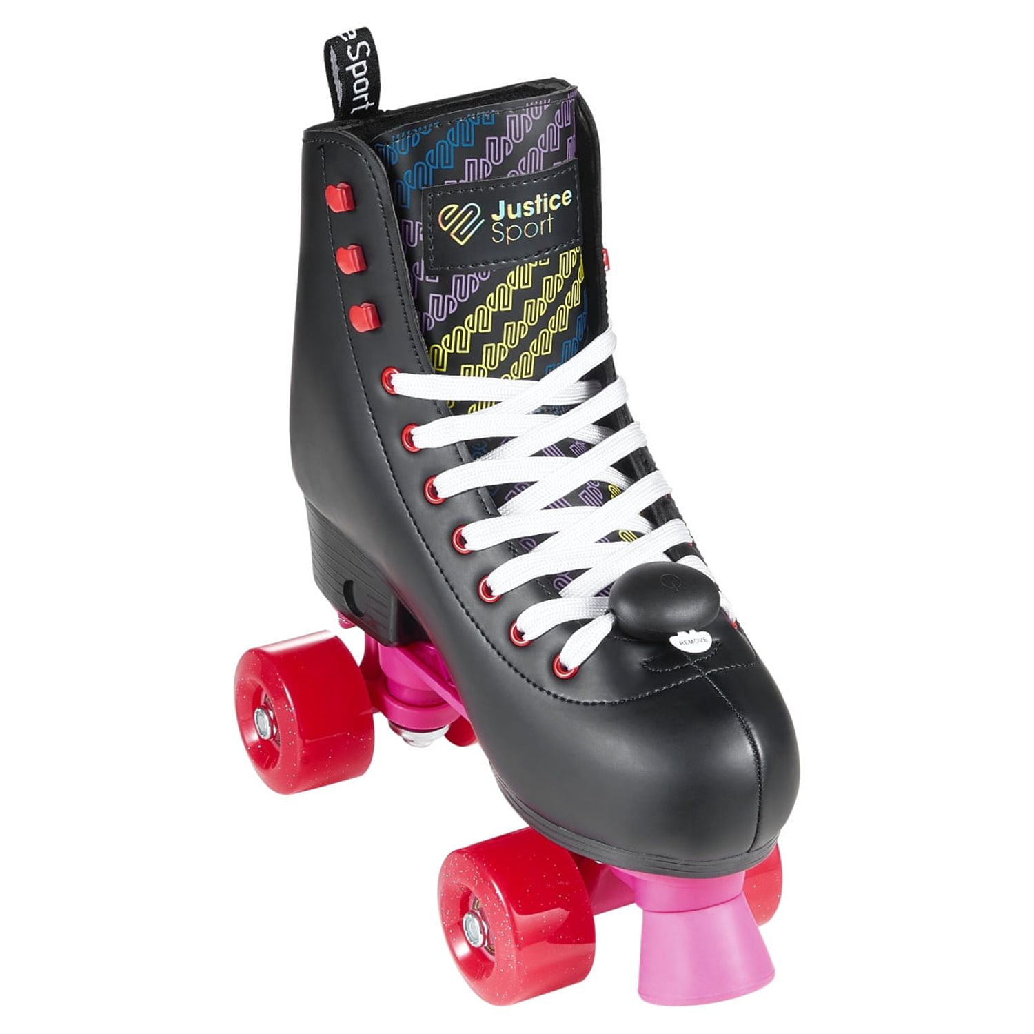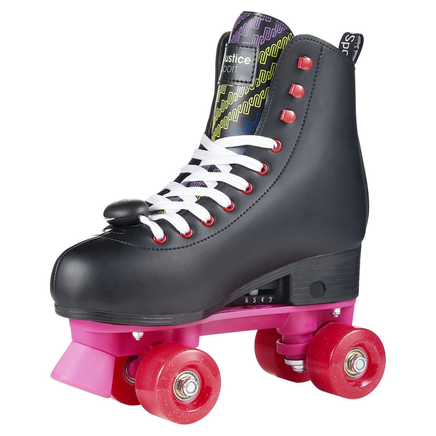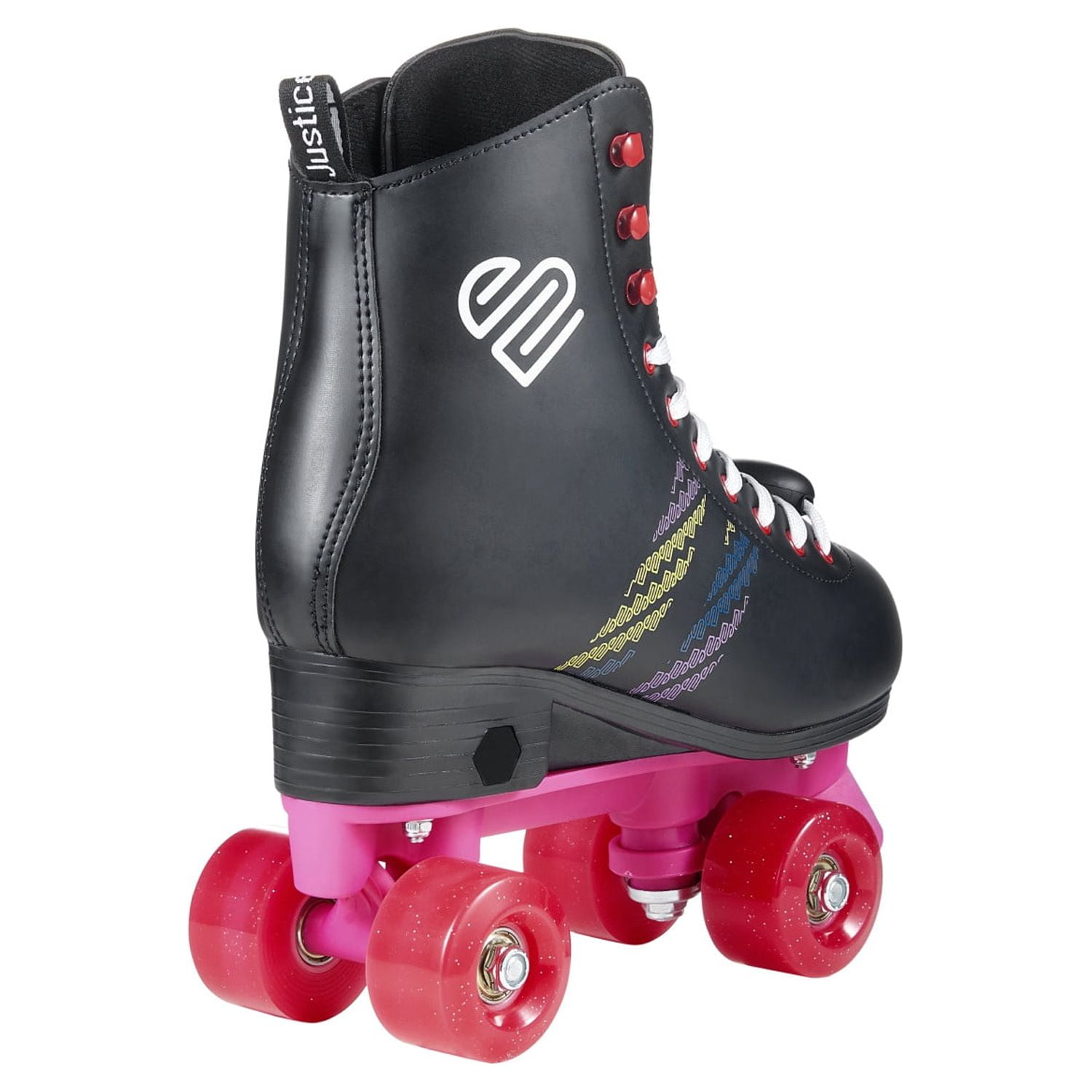 Looking for a stylish and reliable pair of roller skates? Look no further than the Justice Roller Skates! These skates are equipped with metal speed eyelets and hooks, ensuring a snug and secure fit that will keep you comfortable and in control during your skate sessions. Perfect for beginners and novice skaters alike, the Justice Roller Skates feature trucks and cushions designed to guide you through turns and footwork with precision and control, all while sporting a standout style that is sure to turn heads. And with a convenient pull tab, slipping these skates on and off is a breeze. But the Justice Roller Skates aren’t just about looks and comfort. They also feature front brakes that allow for fast and efficient stopping, making them a safe and practical choice for skaters of all skill levels. And best of all, the Justice Quad Roller Skates are the ultimate travel companion, perfect for day-to-day use or for taking on the go. So why wait? Get your groove on and upgrade your skating game with the Justice Roller Skates today! They are ideal for female Teen aged 8 and up.