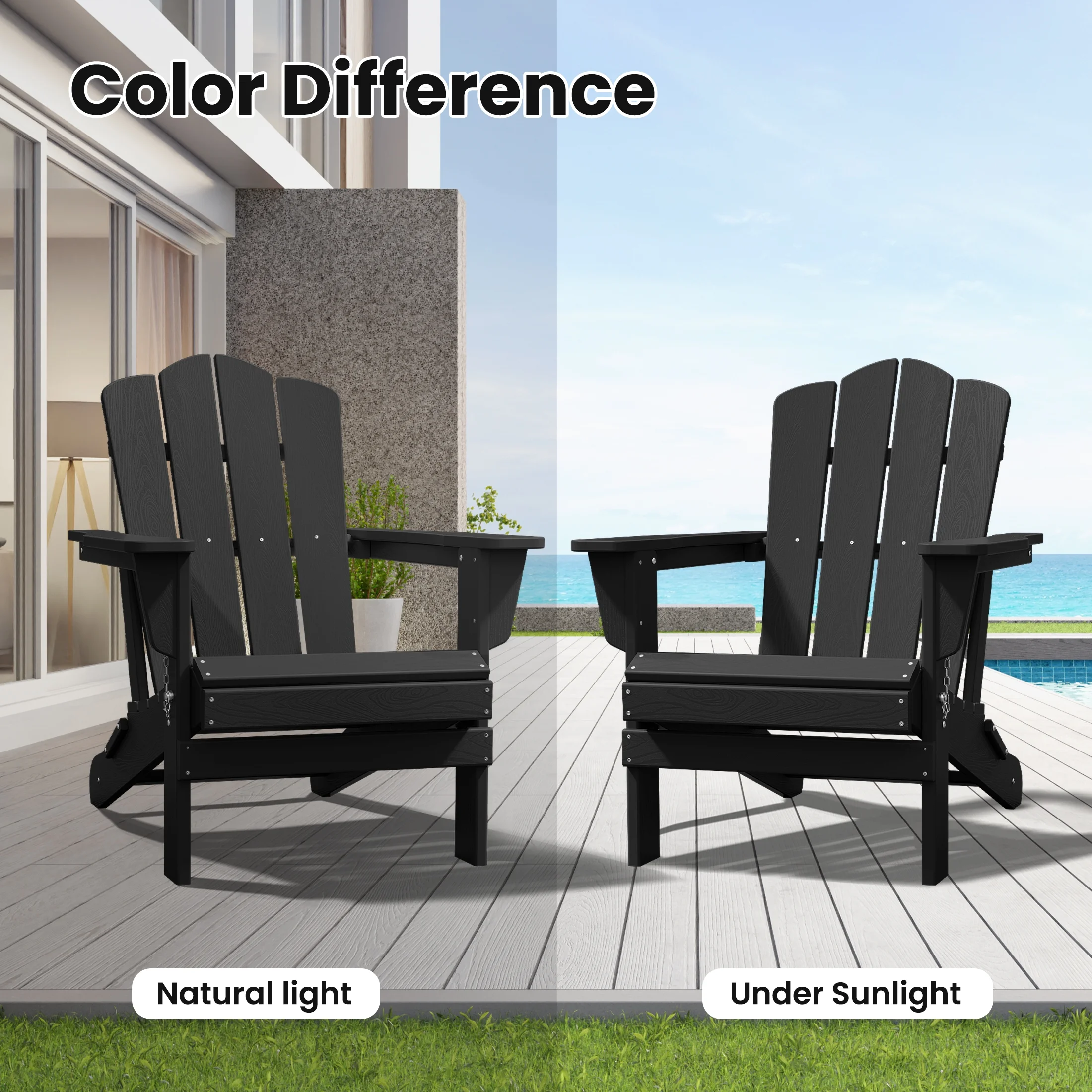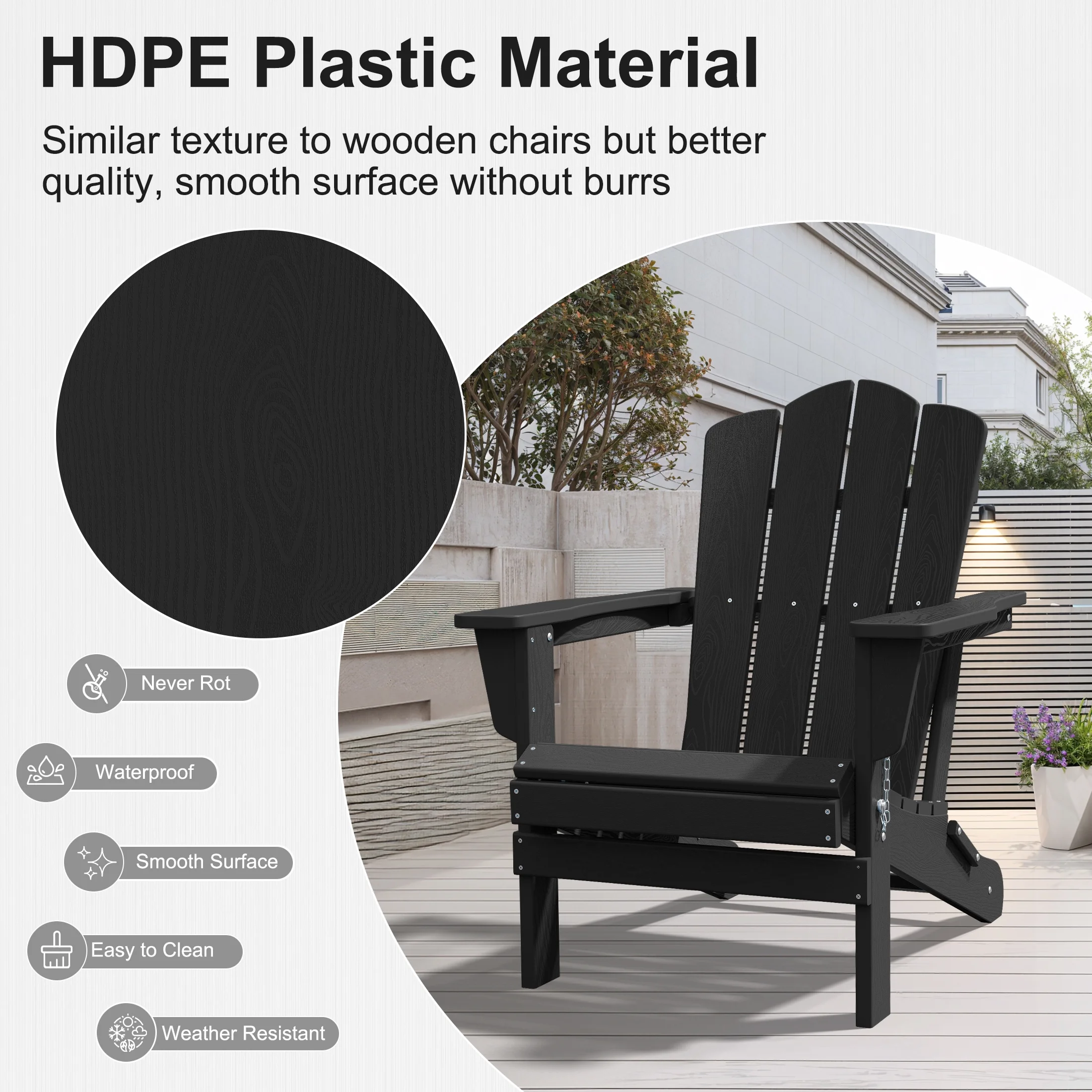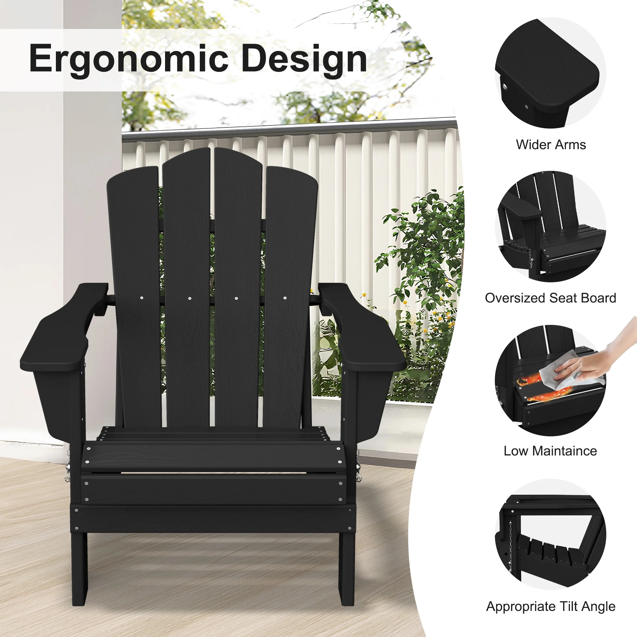 JUSTLET Adirondack Chair, Plastic Folding Outdoor Patio Lawn Chairs, Outside HDPE Chairs for Lawn, Yard, Black