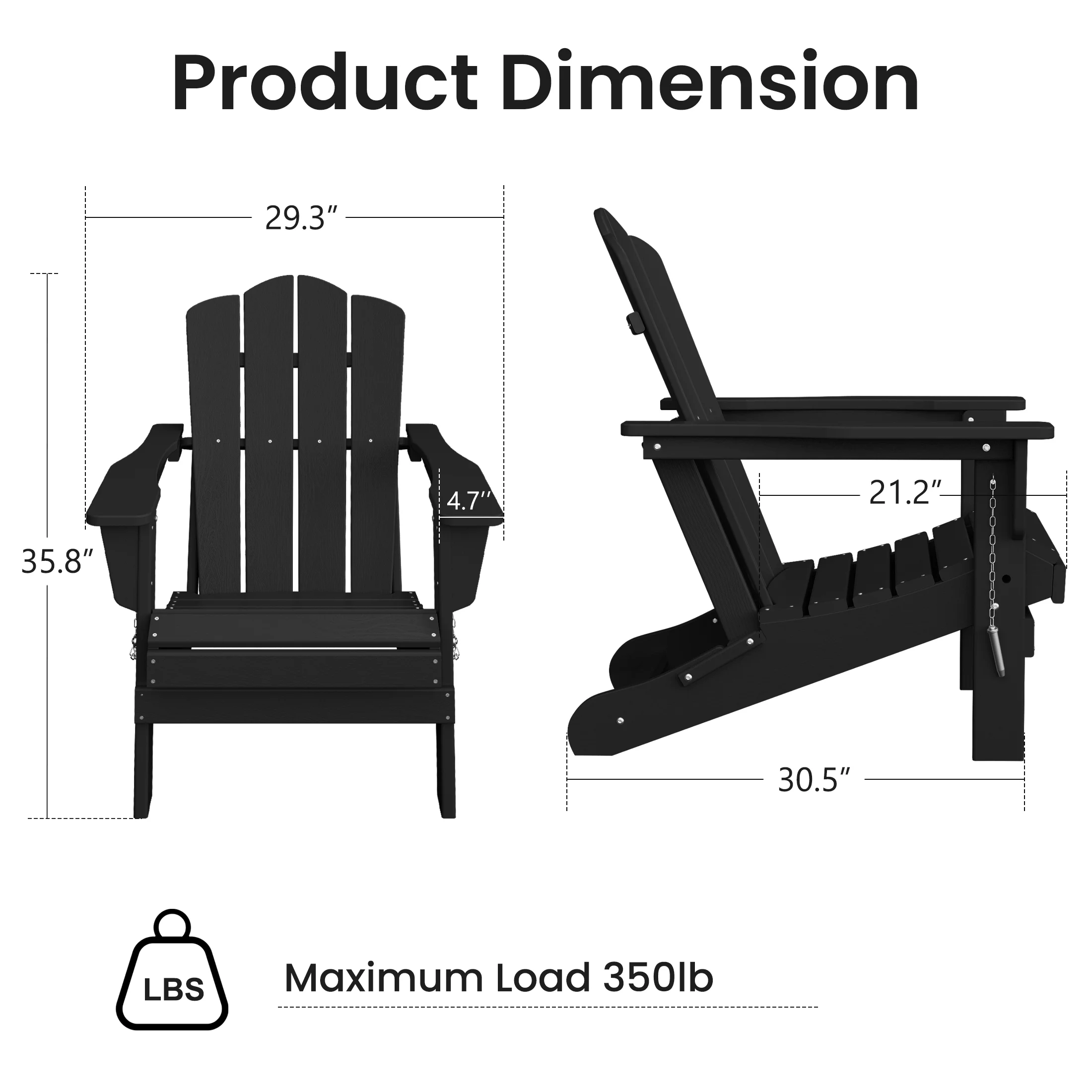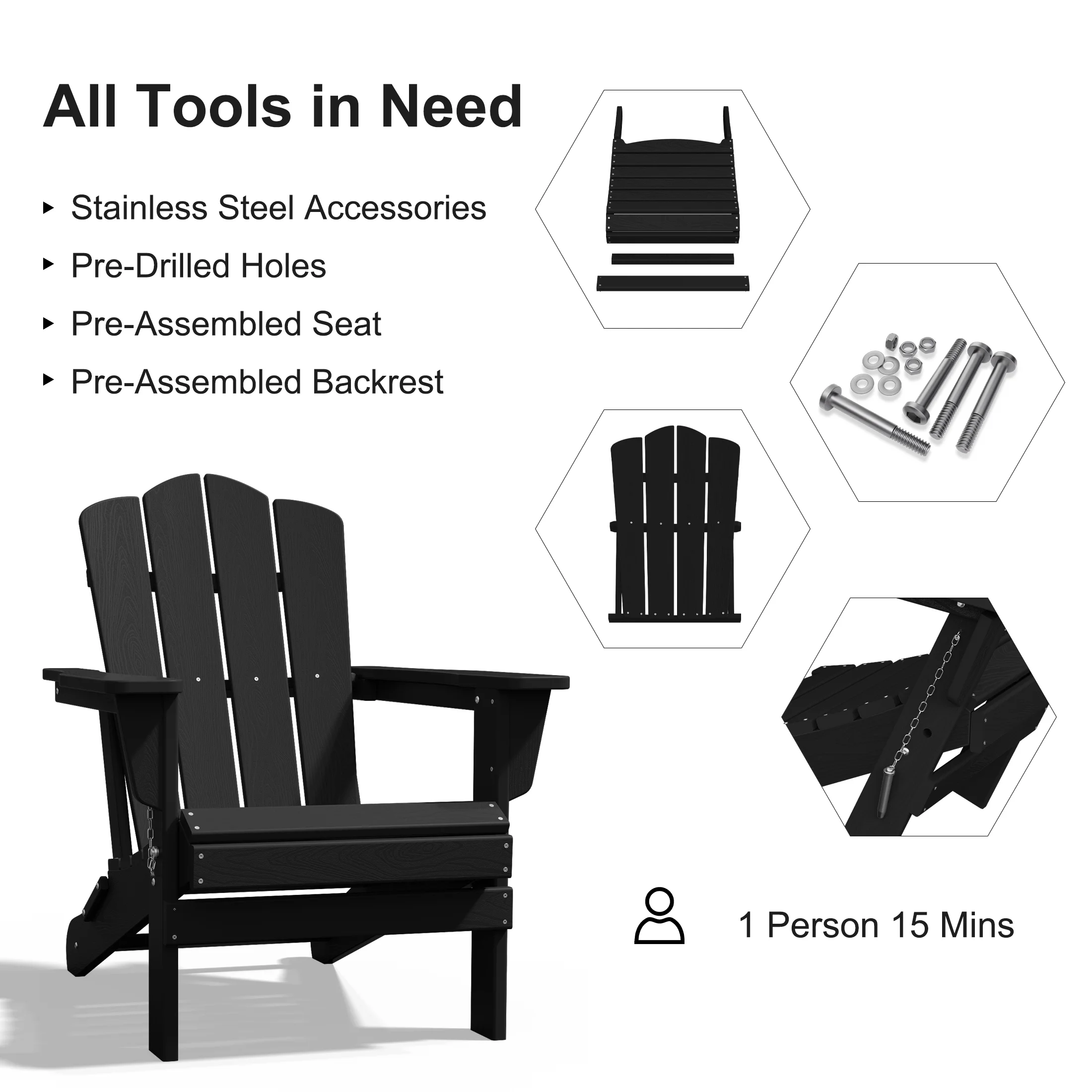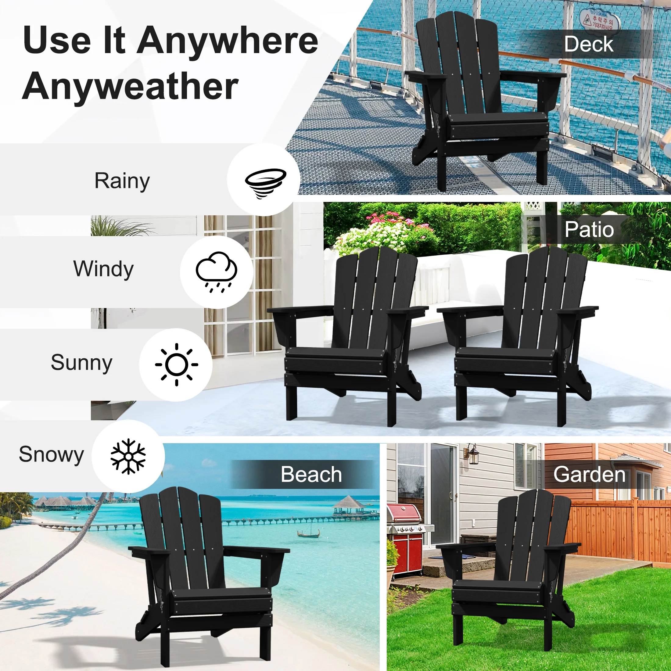 JUSTLET Adirondack Chair, Plastic Folding Outdoor Patio Lawn Chairs, Outside HDPE Chairs for Lawn, Yard, Black