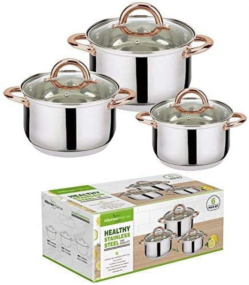 J&V TEXTILES 6-Piece Stainless Steel Casserole Set Pots and Lids