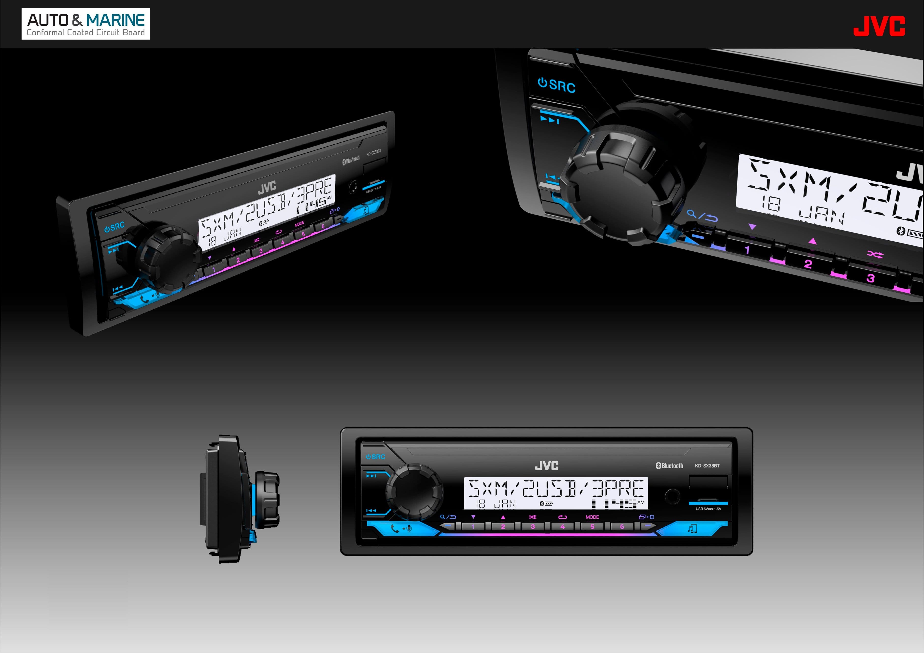 Introducing the ultimate audio solution for your on-the-go lifestyle – The JVC multi-vehicle car stereo has a powerful amplifier and variable color display! Designed to work in a car, boat, ATV, and golf cart, this versatile system is built to handle it all. Featuring a rugged backlit volume knob and a bright backlit display that can be easily seen in direct sunlight, this car stereo is designed to withstand the elements and provide an optimal listening experience no matter where you go. With a variety of connectivity options, including Bluetooth, USB, and AUX, you can easily stream your favorite tunes from your phone or other devices. The easy-to-use interface and intuitive controls make it a breeze to navigate your music, adjust the volume, and switch between sources. Plus, the customizable color display allows you to personalize your listening experience to match your style and mood. Whether you’re hitting the open road, the trails, or the waves, the multi-vehicle car stereo is the perfect choice for anyone who loves to enjoy their music on the go. Upgrade your ride today and never miss a beat!