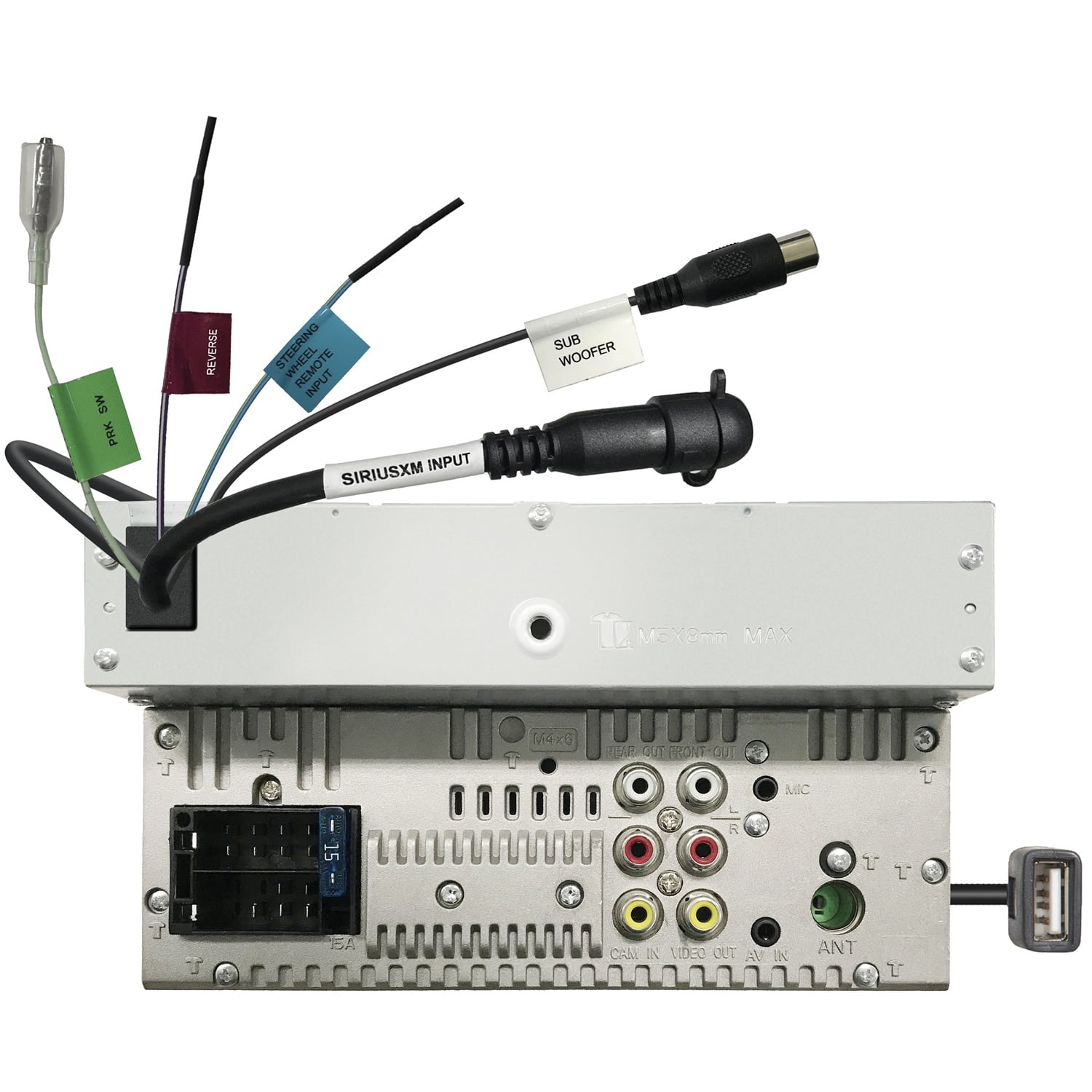 6.8 in. Capacitive Touchscreen Finger Movements Control Volume Level and Forward/Back Built-in Bluetooth for Hands-Free Calling and Audio Streaming with Dual Phone Connection Android Auto and Apple Carplay Compatible Ability to Control and Charge of Apple Devices Using the USB Connection Android Mirroring Via USB Siri Eyes Free Control Plays USB Memory Devices Plus 1.5 Amps Charging A/V Mini Jack input RCa Video Output Rearview Camera input AM/FM Radio 13-Band Equalizer with Digital Time Alignment 50 Watts X 4 Channels Max, 22 Watts X 4 Channels RMS High-Pass, Low-Pass, and Subwoofer Crossover Adjustments 2 Pairs of 2-Volt RCa Preamp Outputs + Sub includes Attached Sleeve, Trim Ring, Power Harness, Speaker Harness, 6.5 Ft. Light-Green Parking Brake Wire (Pre-installed), Microphone with Bracket (Attached 10 Ft. Cable Terminated by a Right-Angle Mono 3.5 mm Connector), 2 Radio Removal Tools, Trim-Ring Removal Tool, 6 Pan-Head ISO-Mount Screws, 6 Flat-Head ISO-Mount Screws, Quick-Start Guide