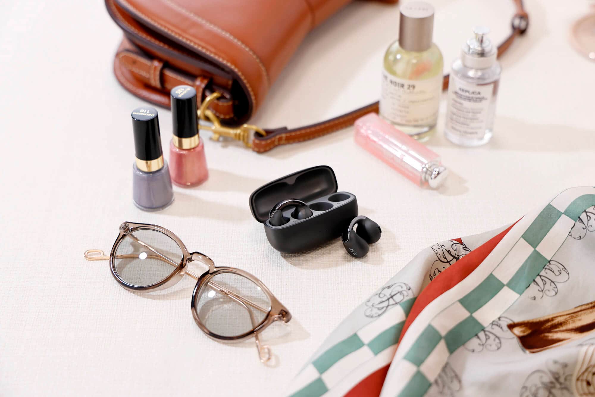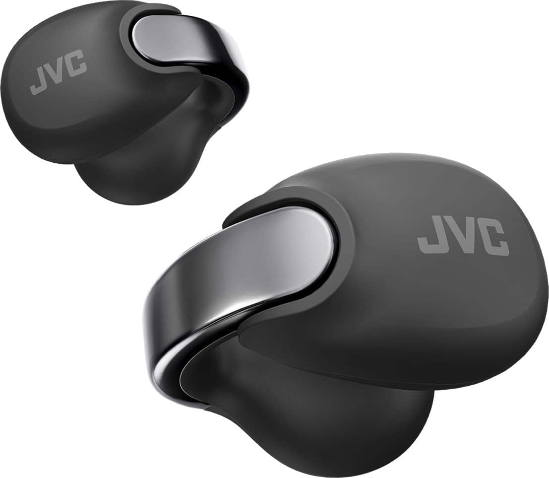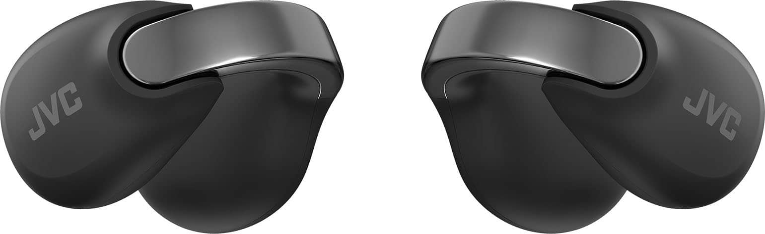 JVC Nearphones open ear cuff style true wireless headphones that won’t block your ears, with featherlight comfort, secure fit, and rich sound. Up to 20 hours of total use with built-in battery and charging case.