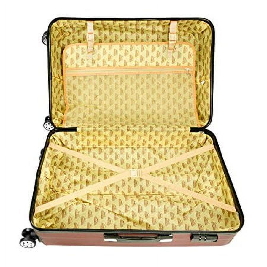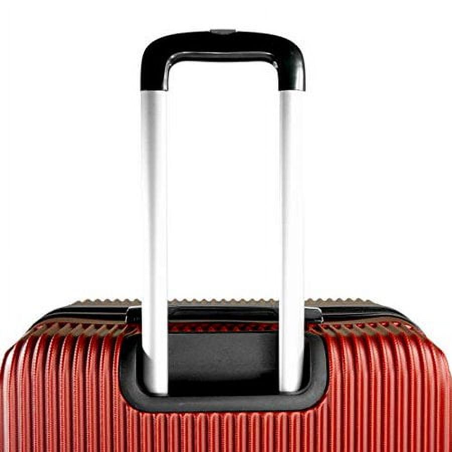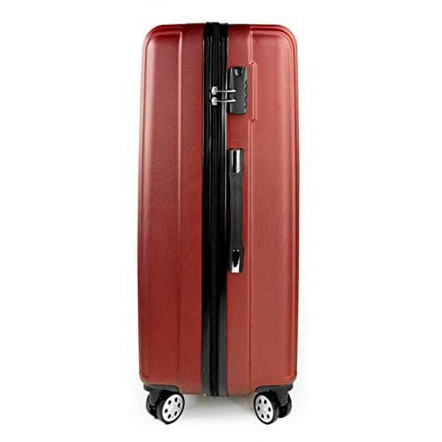 3pcs Luggage Set with Fully lined interior with zippered compartments to keep you organized during your travels. Hard Shell Travel Luggage Set made of premium grade polycarbonate & ABS material that allows it to be lightweight, durable, and flexible. 3pcs Travel Luggage Set with 4 dual spinner wheels for smooth rolling in any direction. 2-level telescopic handle perfect for people of all heights and a secure top & side handle for easy pick up. Travel suitcases with Scratch resistant outer design for withstanding abuse and weathering during travels. Travel Spinner Suitcases with zippers for safely securing your valuables, available on all sizes in the set. Red Color 3pcs Luggage set dimension 28 in. H x 12 in. W x 18 in. L, 24 in. H x 11 in. W x 16 in. L, 20 in. H x 9 in. W x 14 in. L,