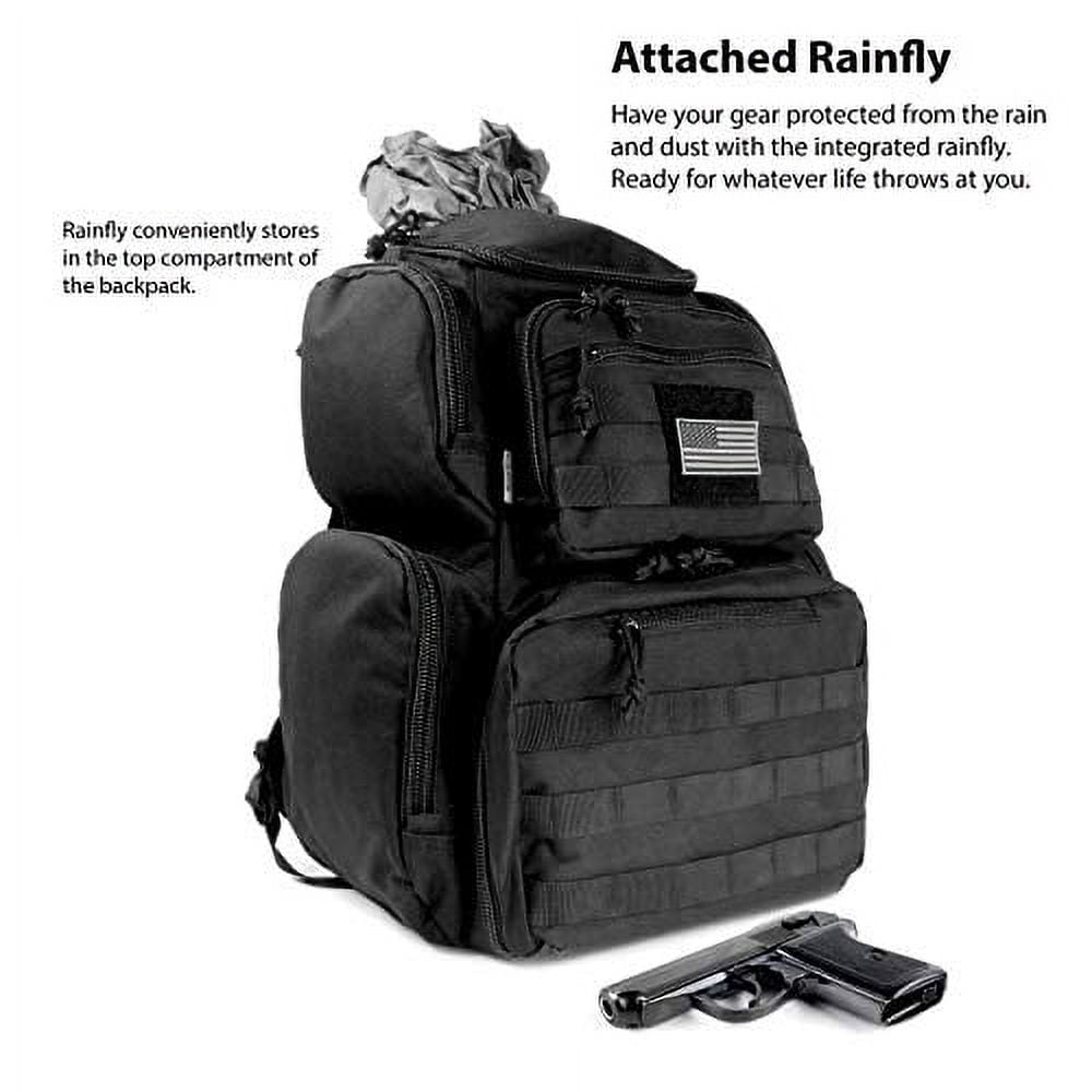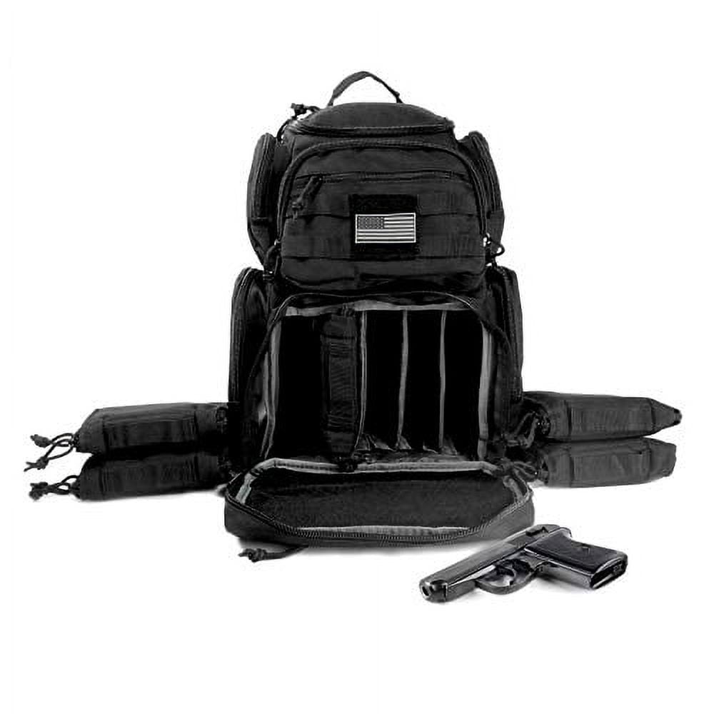K-Cliffs Range Backpack , Multi-Functional Pistol Pouches Magazine Pockets 900D Polyester, Bag with US Flag Patch Black, Adults