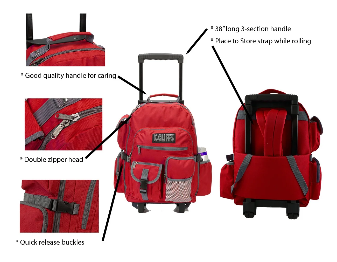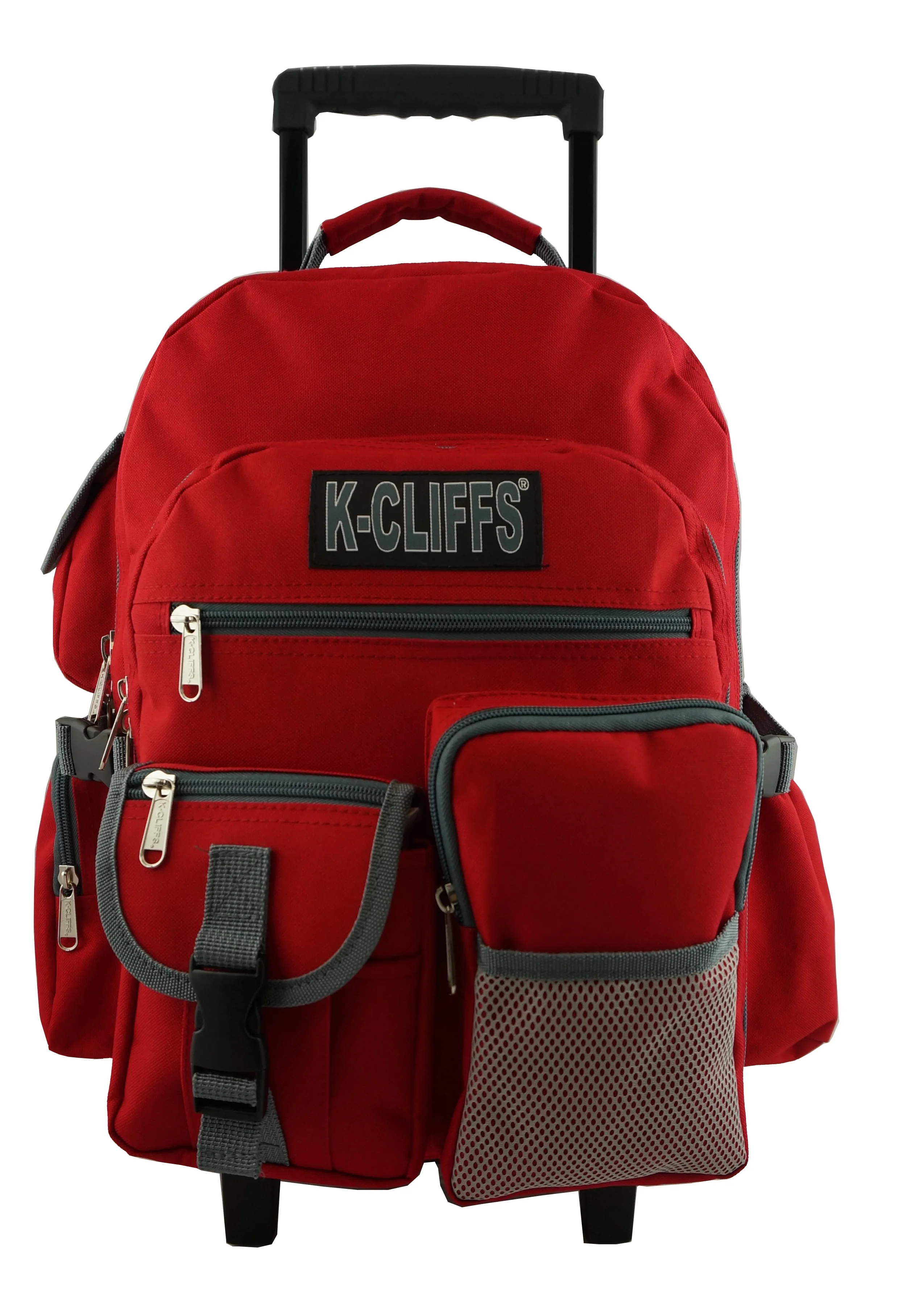 K-Cliffs Unisex Heavy Duty Rolling School Backpack in Red, Teen-Adult, 100% Polyester