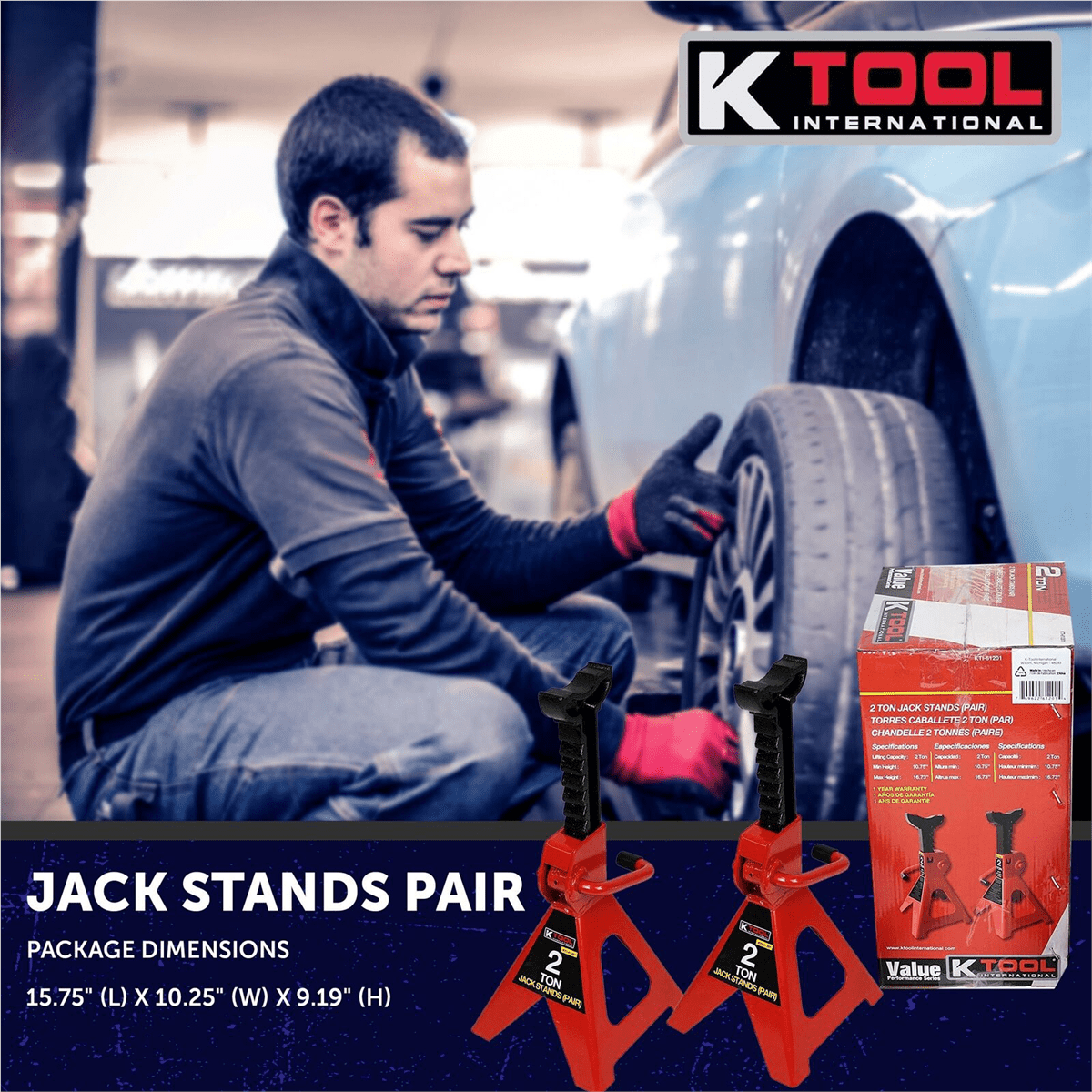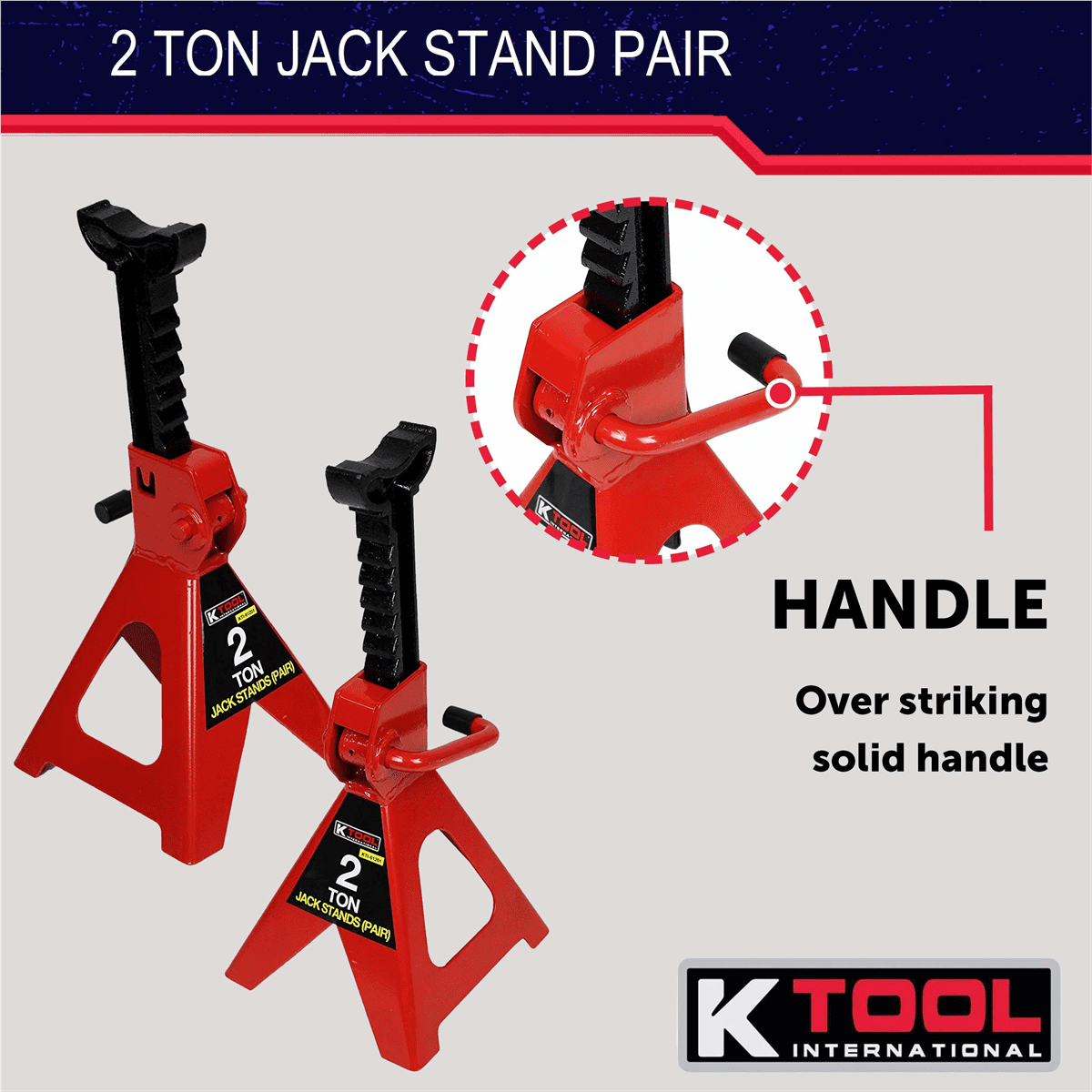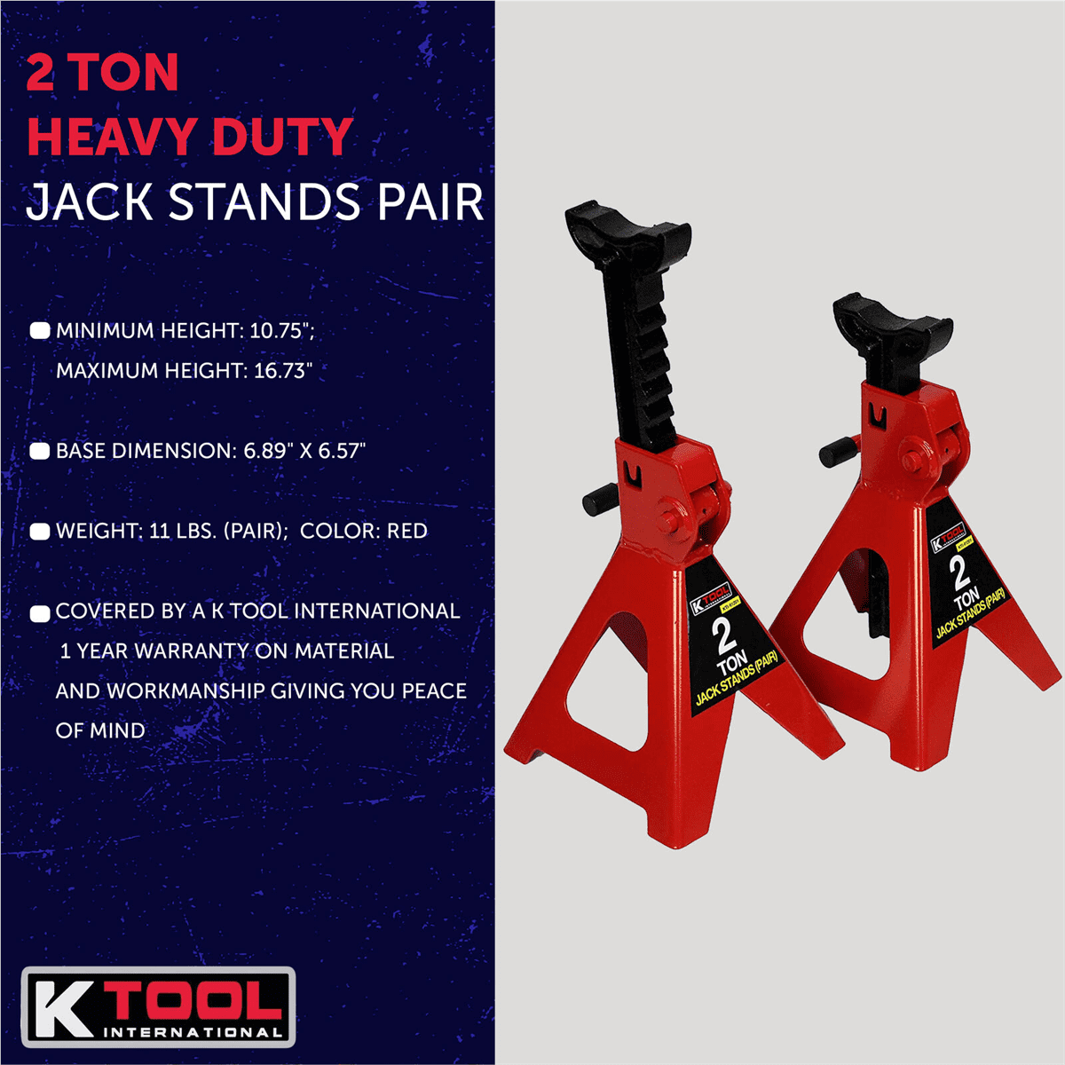 K Tool 61201 2 Ton Jack Stands, Heavy-Duty Steel, Adjustable Height