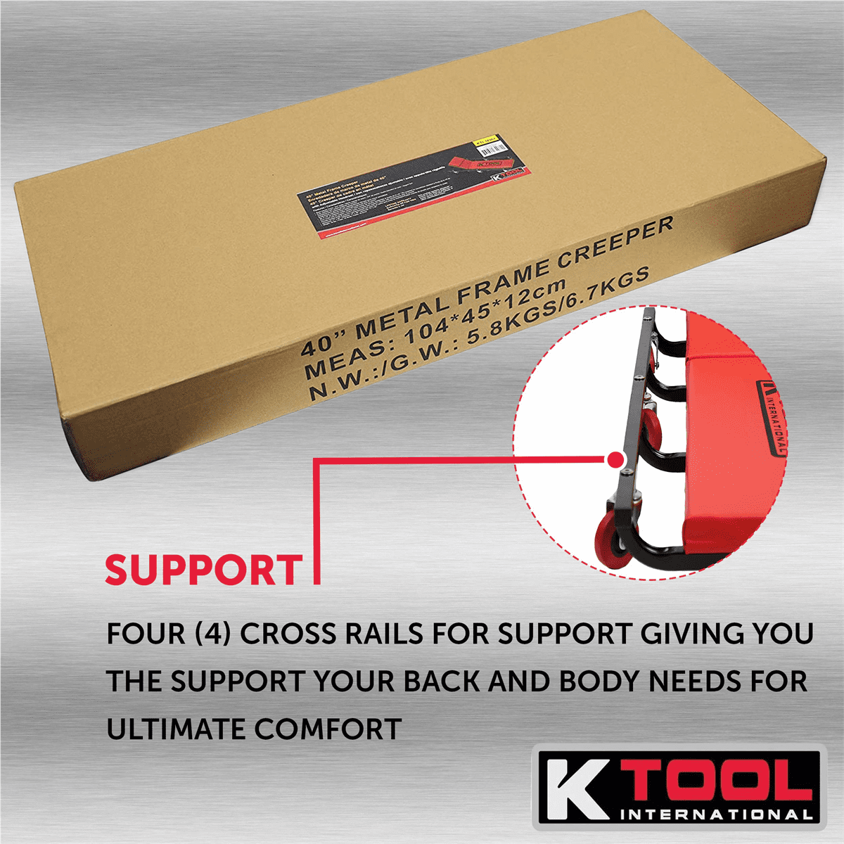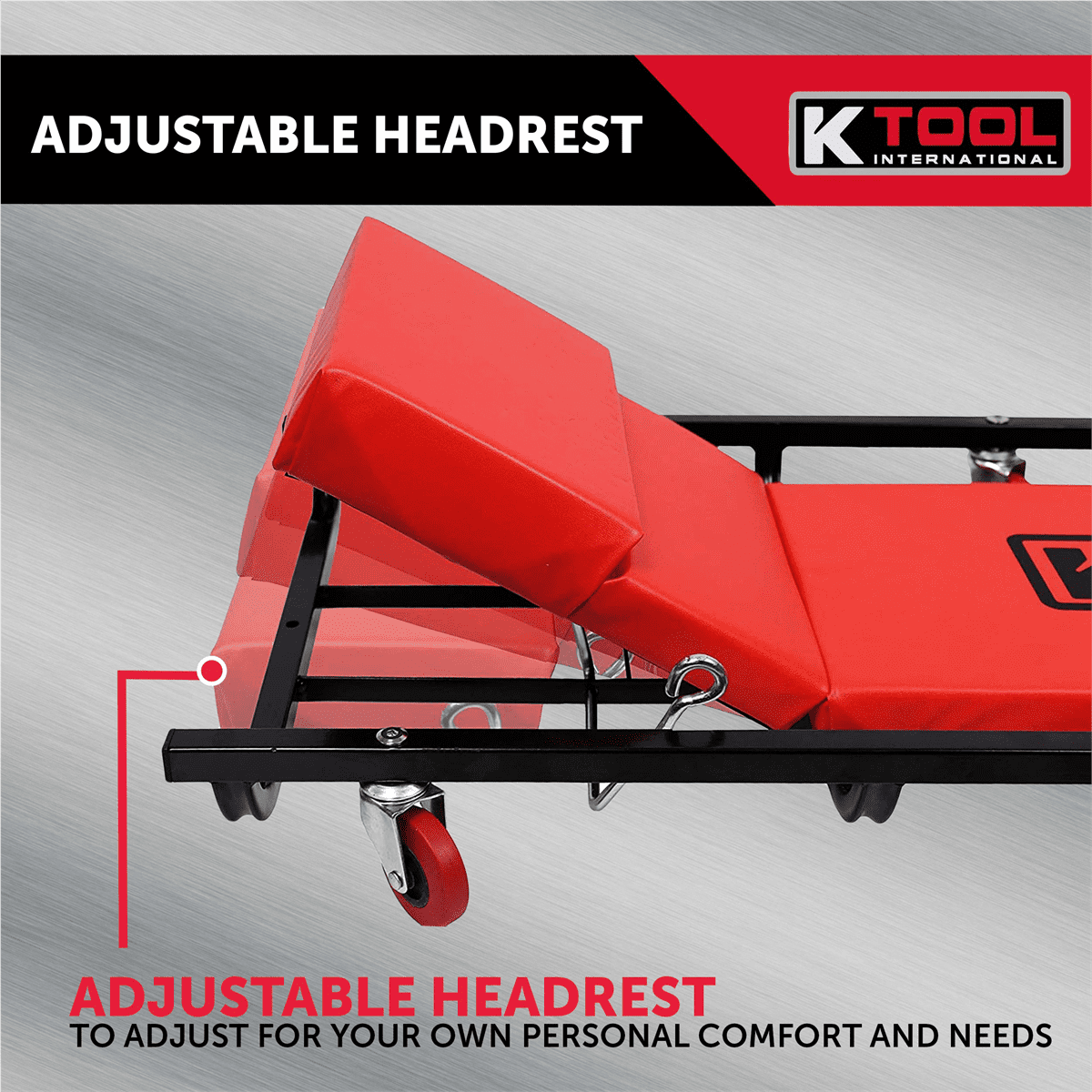 K Tool 74961 40″ Automotive Creeper, Steel Frame, Padded Headrest, Casters