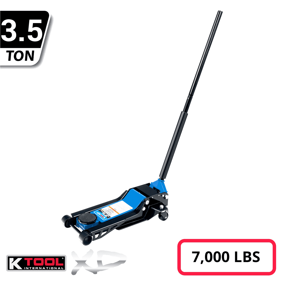 HYDRAULIC SERVICE JACK: This 3.5 ton low-profile service jack is designed to accommodate a wide range of lifting applications. Specifications include a minimum lifting height of 3.5’’ and a maximum lifting height of 21.4’’ EFFICIENT PUMPING SYSTEM: Achieve maximum height in just 4 pumps (under no load), ensuring a swift and efficient lifting process that saves you time and effort during your automotive tasks. Perfect for use in mechanic and automotive shops EXCLUSIVE DESIGN: Stand out with an exclusive design, boasting an overall length of 28.25″, an overall width of 14.5″, and a saddle diameter of 4.5″. This unique design combines functionality with a modern aesthetic SAFETY FIRST: Rest easy knowing that our service jack is equipped with a safety valve, preventing overloading and providing an added layer of protection during use, enhancing both the jack’s durability and user safety WARRANTY INCLUDED: K-Tool provides a two-year warranty on material and workmanship to guarantee a worry-free purchase. We stand behind the quality of our work, so you can purchase with peace of mind