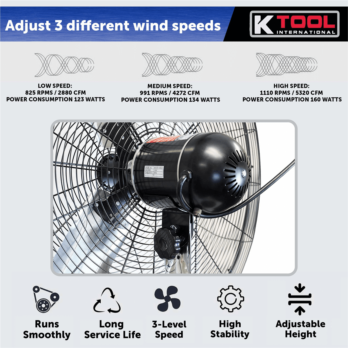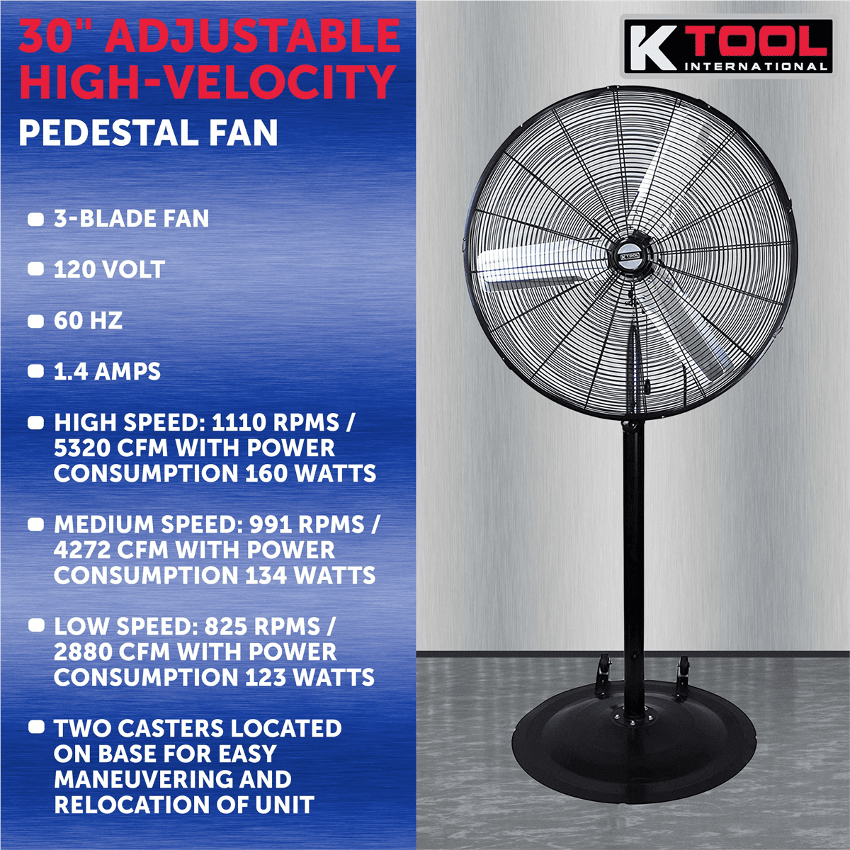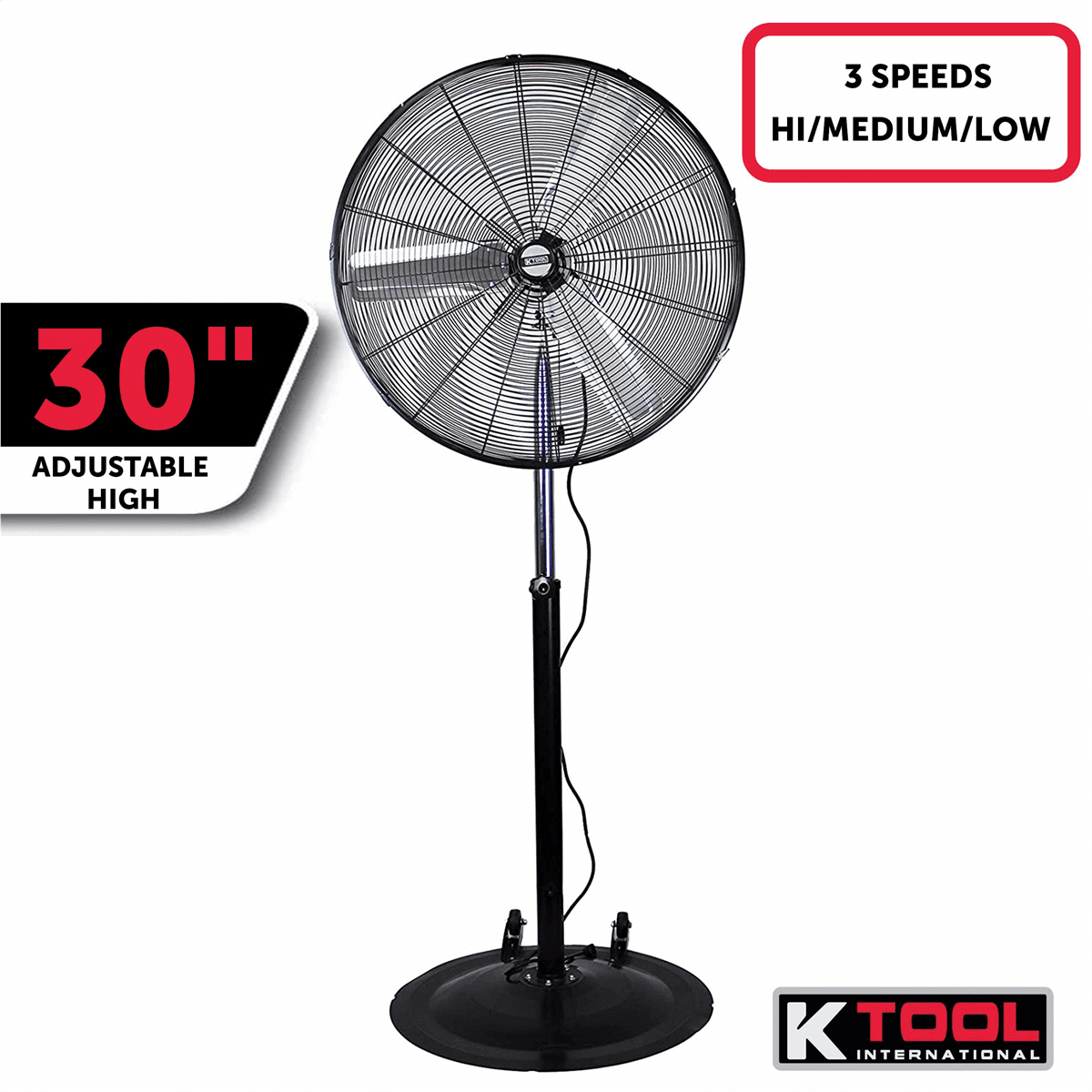 K Tool 77730 Pedestal Industrial Fan, 30″ Three Speeds, 1/2 HP