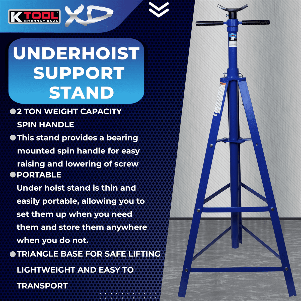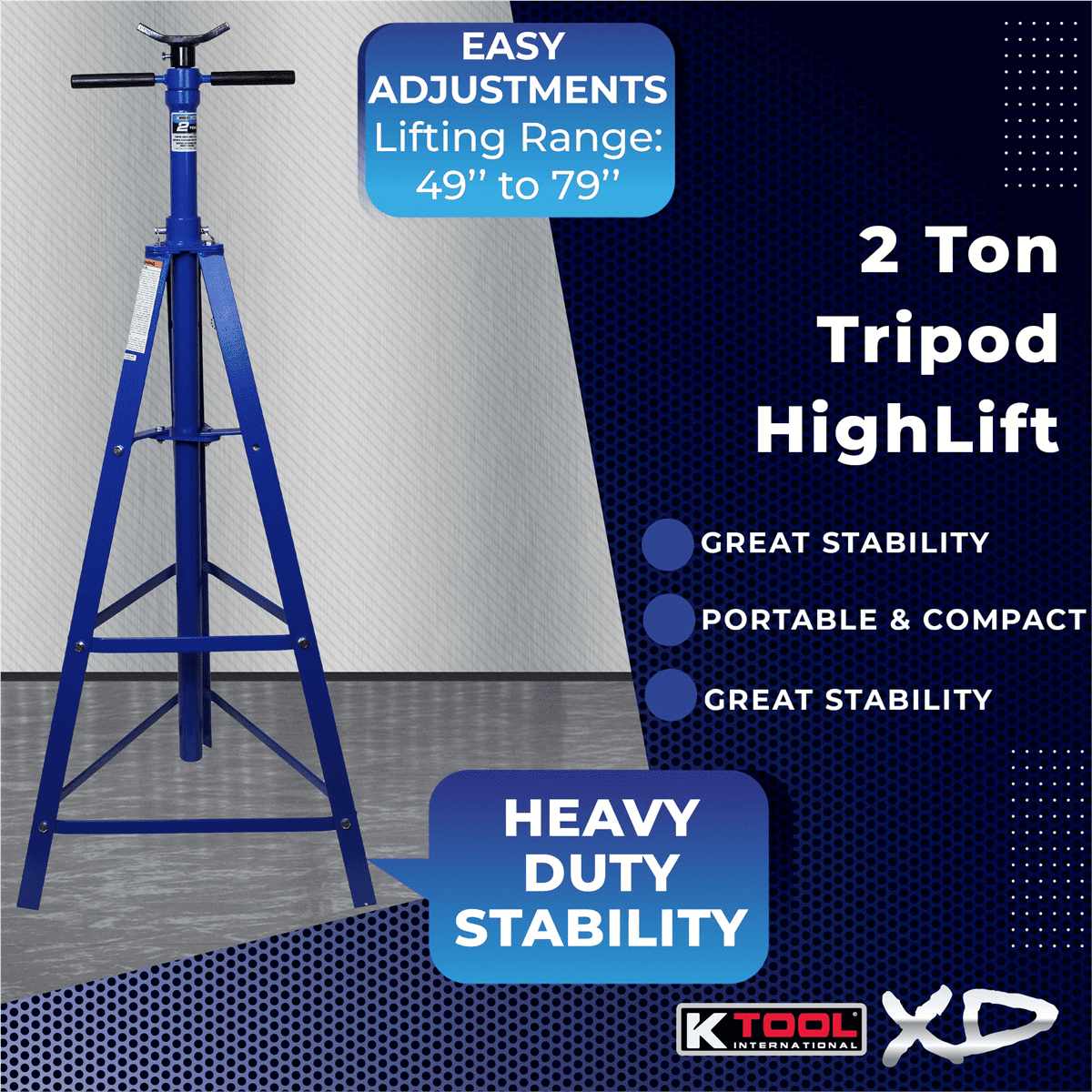 K Tool XD61002 2 Ton Under Hoist Tripod Stand, Adjustable, Steel Construction