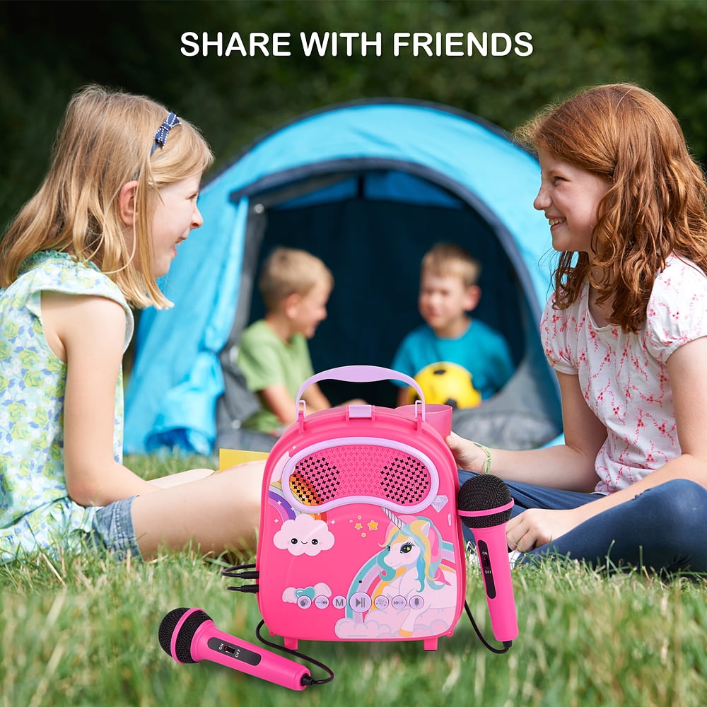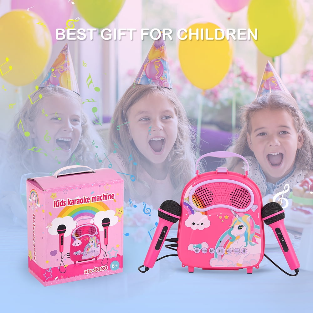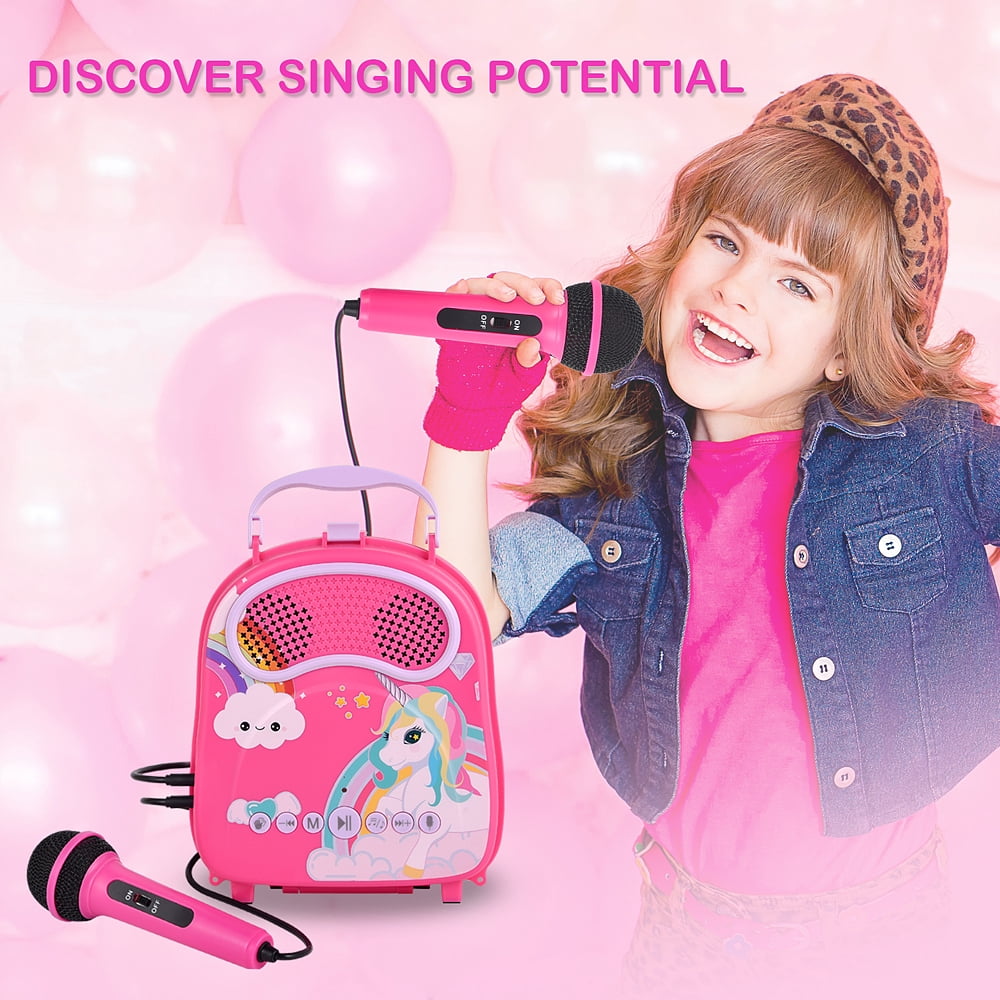 Kakutoy Kids Karaoke Machine for Girls with 2 Microphones Toddlers Singing Karaoke Toy Portable Children KTV Speaker with Voice Changer for Christmas Holiday Birthday Gift