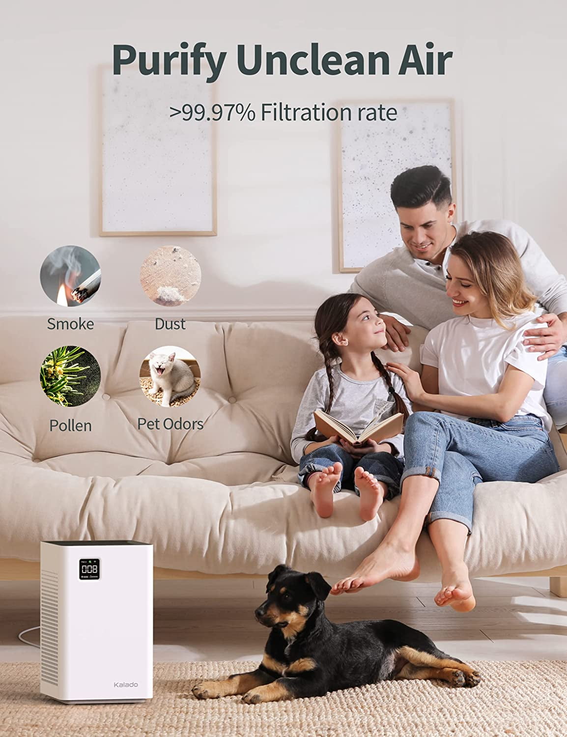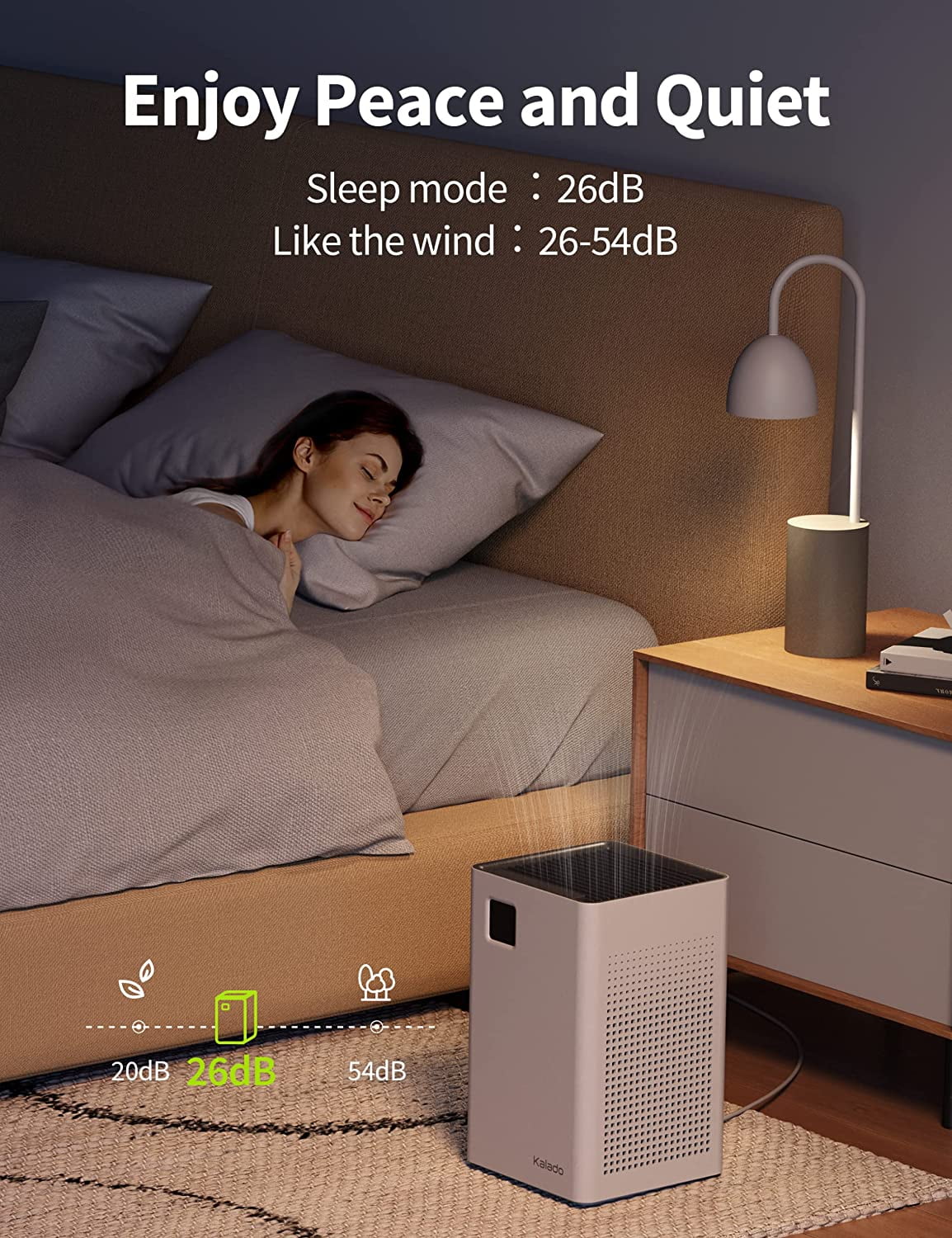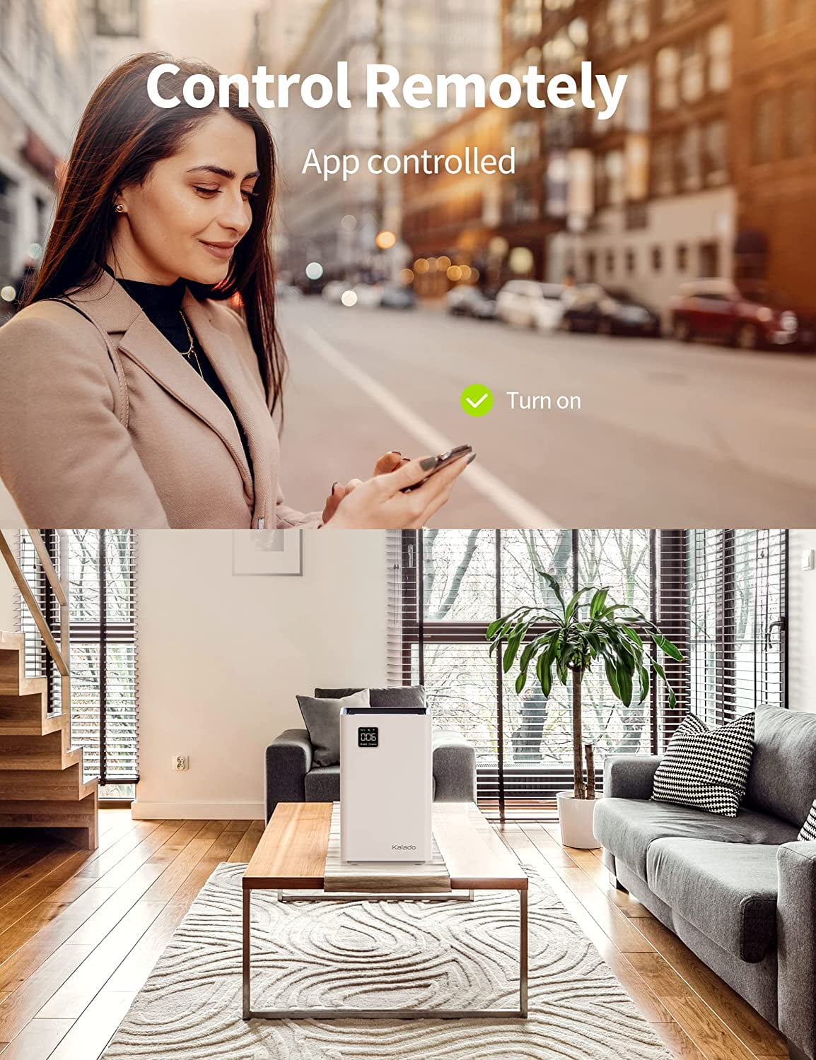 Kalado Air Purifier with Smart Wi-Fi, Double Filter, Voice Control, PM2.5 Detector, Energy Saving