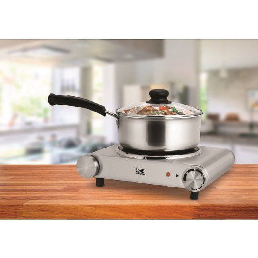 Make your life easy and portable with the Kalorik Stainless Steel Ceramic Cooking Plate. This handy and portable appliance offers exceptional convenience in a dorm room, apartment, while traveling, or as an extra cooking aide in your home. This single cooking plate has stainless steel housing and ceramic cooking surface which makes it very easy to clean. Its infrared heating element reaches high temperatures instantly while saving time and energy. The Kalorik Stainless Steel Cooking Plate features an adjustable power setting for instant and precise adjustments and skid proof rubber feet. With its stylish design and eye catching appearance, this cooking plate fits perfectly on every countertop