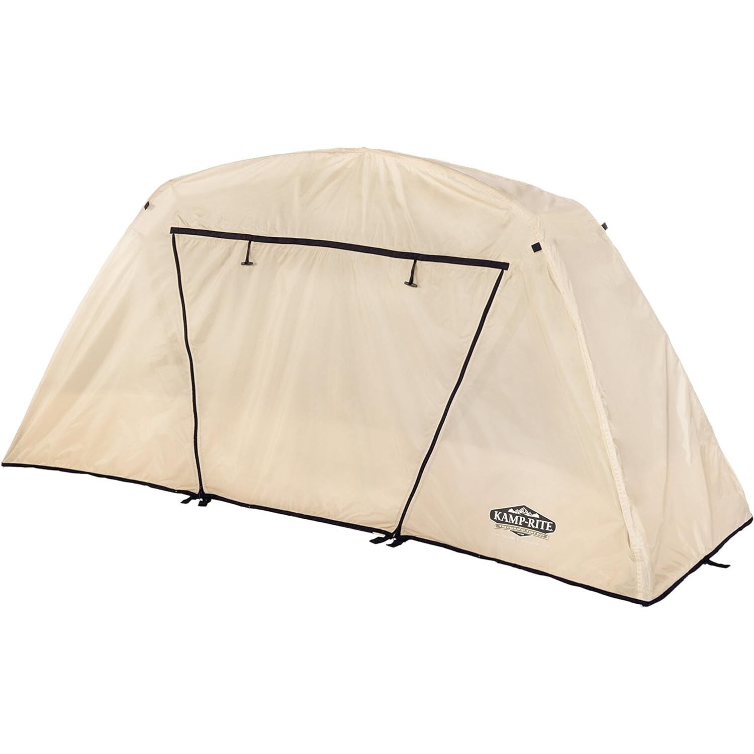 The Kamp-Rite “IPS” (Insect Protection System) is an extremely versatile item which adapts quickly to almost any environment. The “No-See-Um” mesh tent top utilizes aluminum poles and can be used as a standard on the ground tent shelter. For a more pleasant night’s sleep the IPS can be placed directly on a standard camping cot for added off-the-ground comfort. Compact and lightweight, the “IPS” packs down and stores in a six-inch by six-inch by 14-inch carry bag and weighs just six pounds. The “IPS” comes complete with a Rain Fly which provides both privacy and protection from inclement weather.