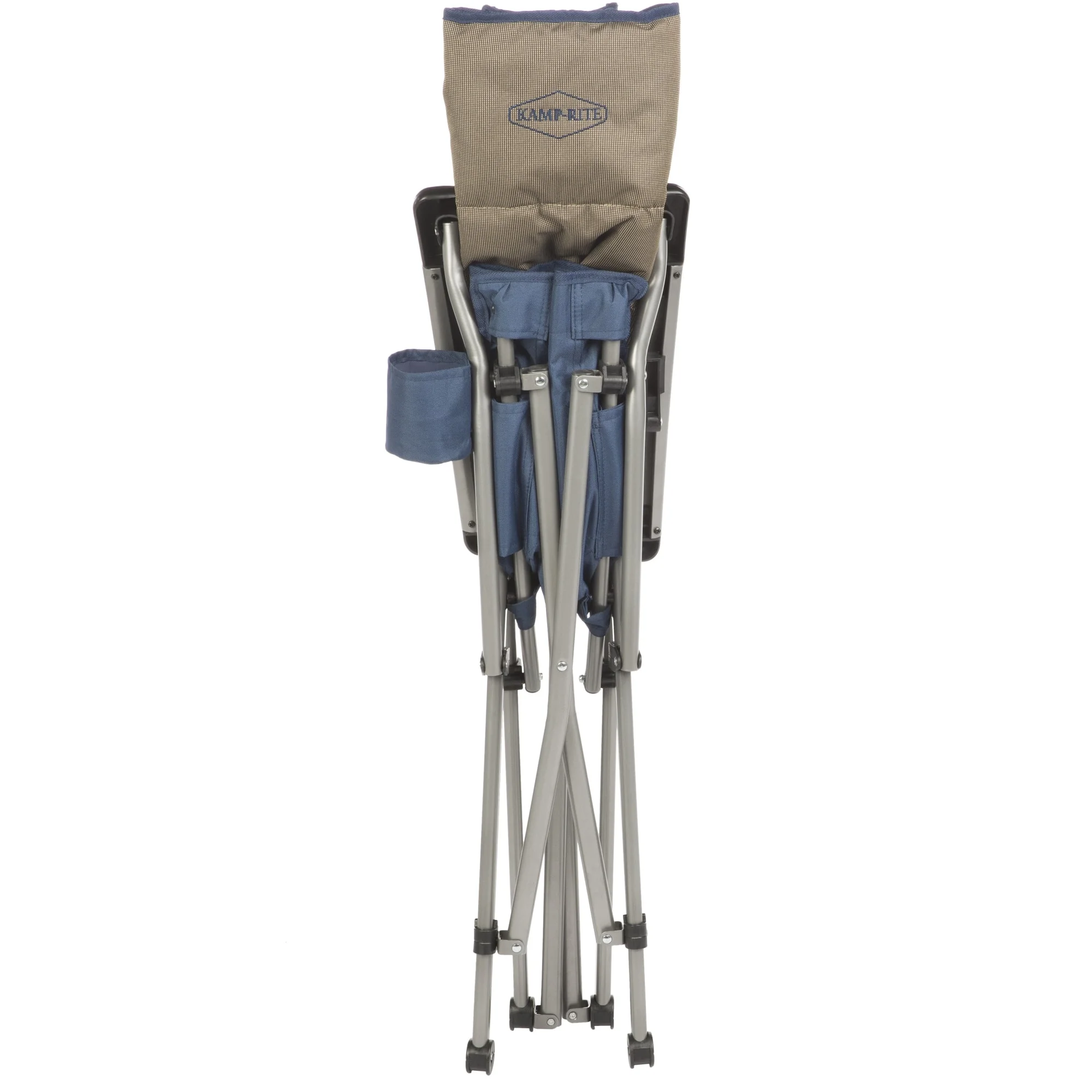 Lounge in style with the Kamp-Rite Hard Arm Reclining Chair. The polyester material provides a comfortable feel, while the swing-away cup holder keeps your drink close by. Weight capacity tested to support 300 lb. Polyester material provides comfort. Durable steel frame. Extended back offers support.