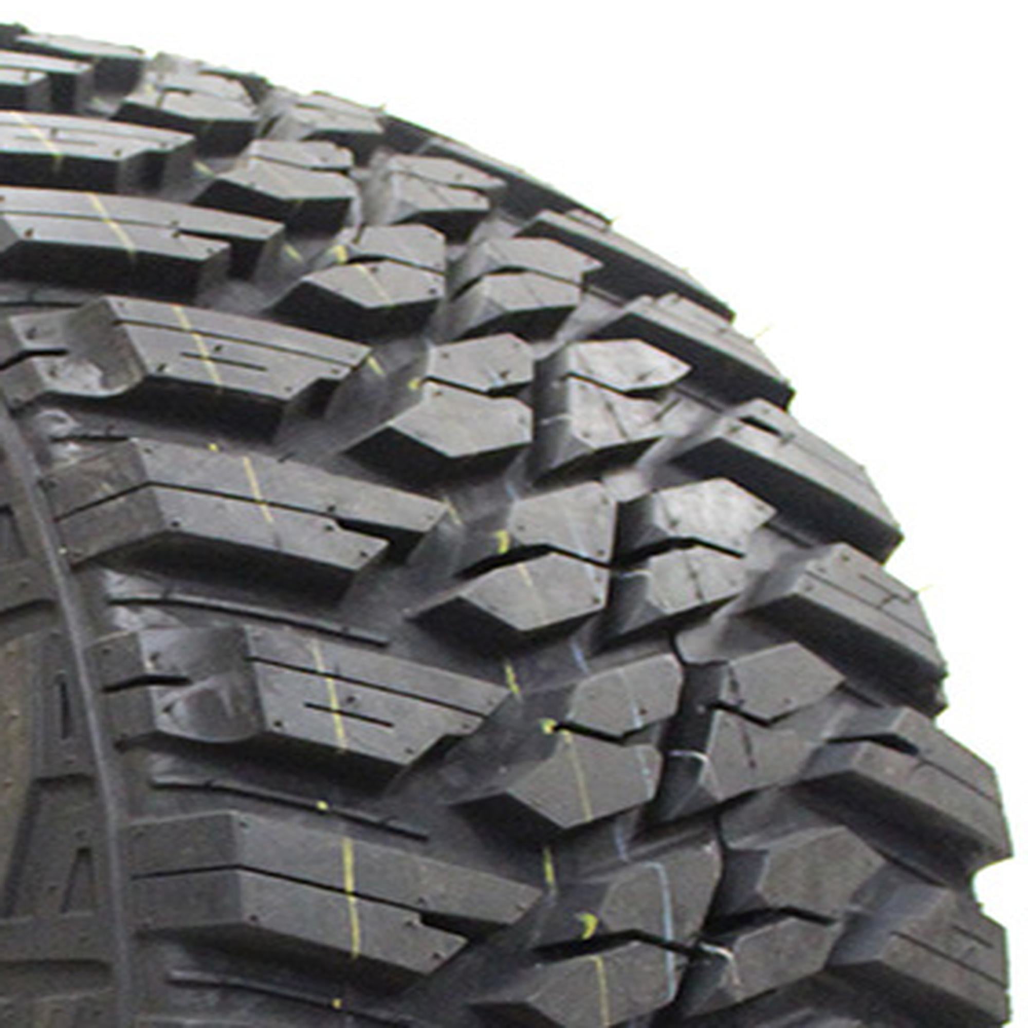 Tread is ideal for mud and other off-road terrains Durable sidewall combats cuts, chips, and punctures Durable mud-terrain tire for light trucks and SUV in rough off-road use Can be used aired-down for rock crawling Reinforced sidewall guards the tire against cuts, chips, and abrasions Innovative angled tread blocks boost traction in mud, dirt, rocks, and other tough off-road terrains Tread pattern promotes self-cleaning for consistent traction and to protect the casing from damage Mud-terrain tire for light trucks, Jeeps, and SUVs Staggered-lug tread pattern with wraparound lugs at shoulder for lateral traction Reinforced sidewalls for a higher load carrying capacity Tough casing, nylon cap, and reinforced bead work together to guard the tire against damage M+S rated for mud and snow traction Size: LT33X12.50R18 Load Range: E Product May Vary From Picture Wheel/Rim Not Included