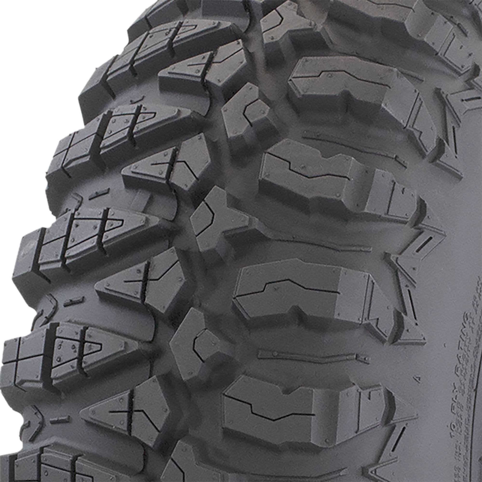 Dual tread pattern — Can be mounted with outboard side for soft to intermediate terrain, or outboard side for hard terrain Radial construction provides stability and creates a forgiving ride Optimized for forward traction Tread formulation is engineered to resist punctures and cuts for a longer tread life Size: 31X10.0R14 Load Range: E Product May Vary From Picture Wheel/Rim Not Included