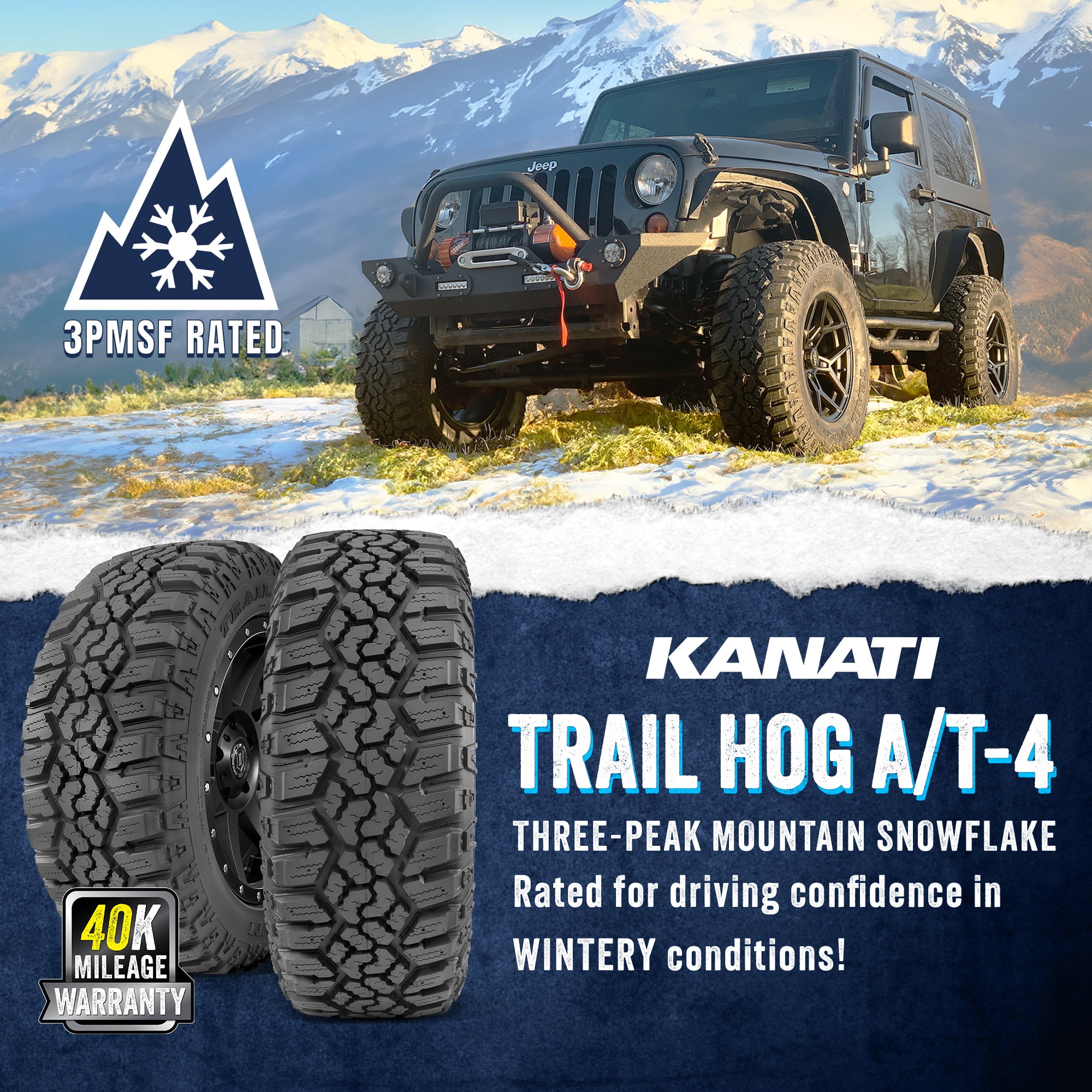 Kanati Trail Hog LT285/60R20 125/122Q E OVERVIEW The Kanati Trail Hog was designed for exceptional traction, stability, and reliability in all kinds of terrains and weather conditions. The Trail Hog’s unique design is suitable for everyday use in some of the harshest winter locations, while also retaining a smooth ride.