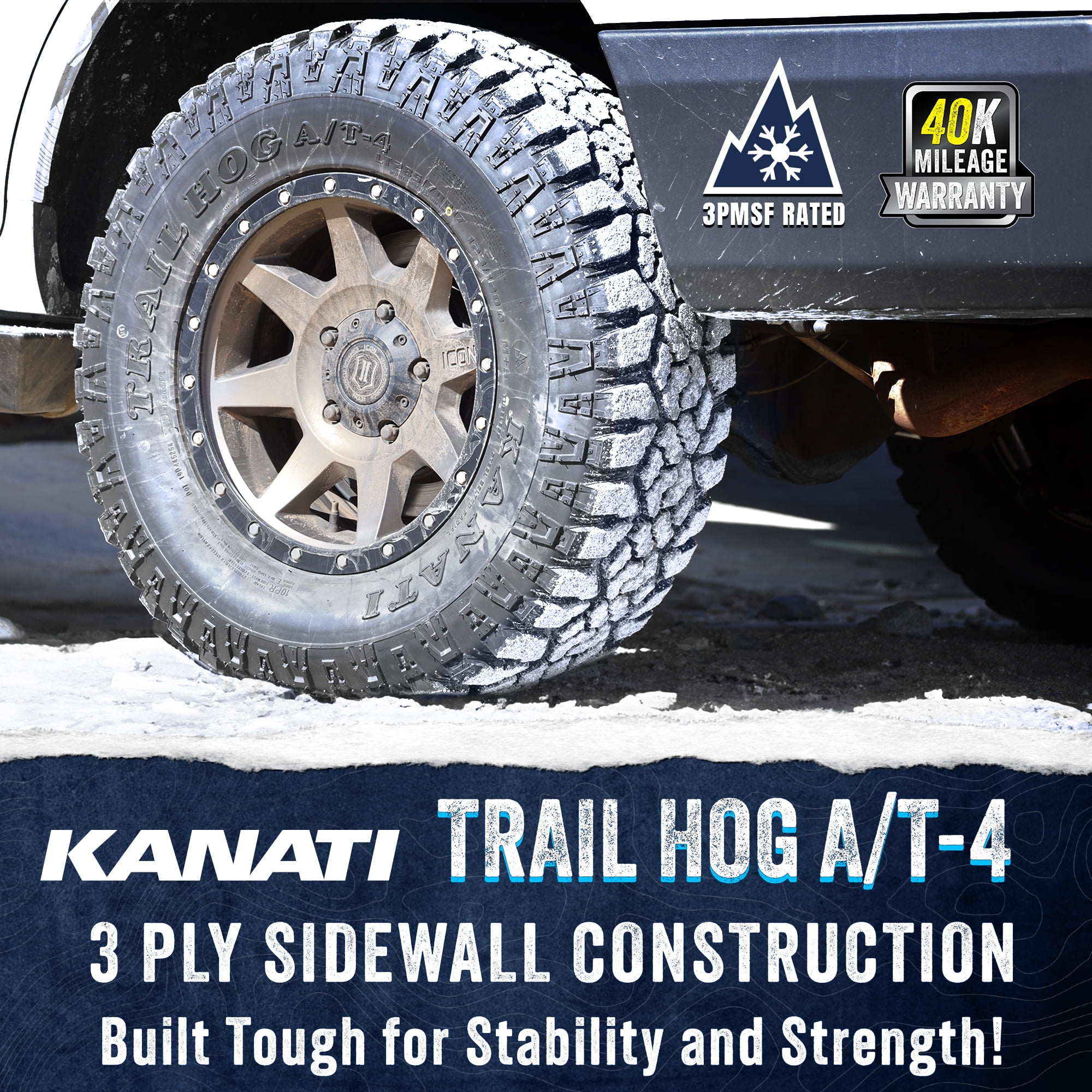 Kanati Trail Hog LT305/55R20 121/118Q E OVERVIEW The Kanati Trail Hog was designed for exceptional traction, stability, and reliability in all kinds of terrains and weather conditions. The Trail Hog’s unique design is suitable for everyday use in some of the harshest winter locations, while also retaining a smooth ride.