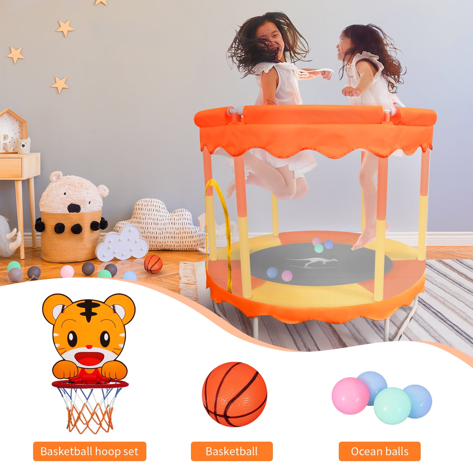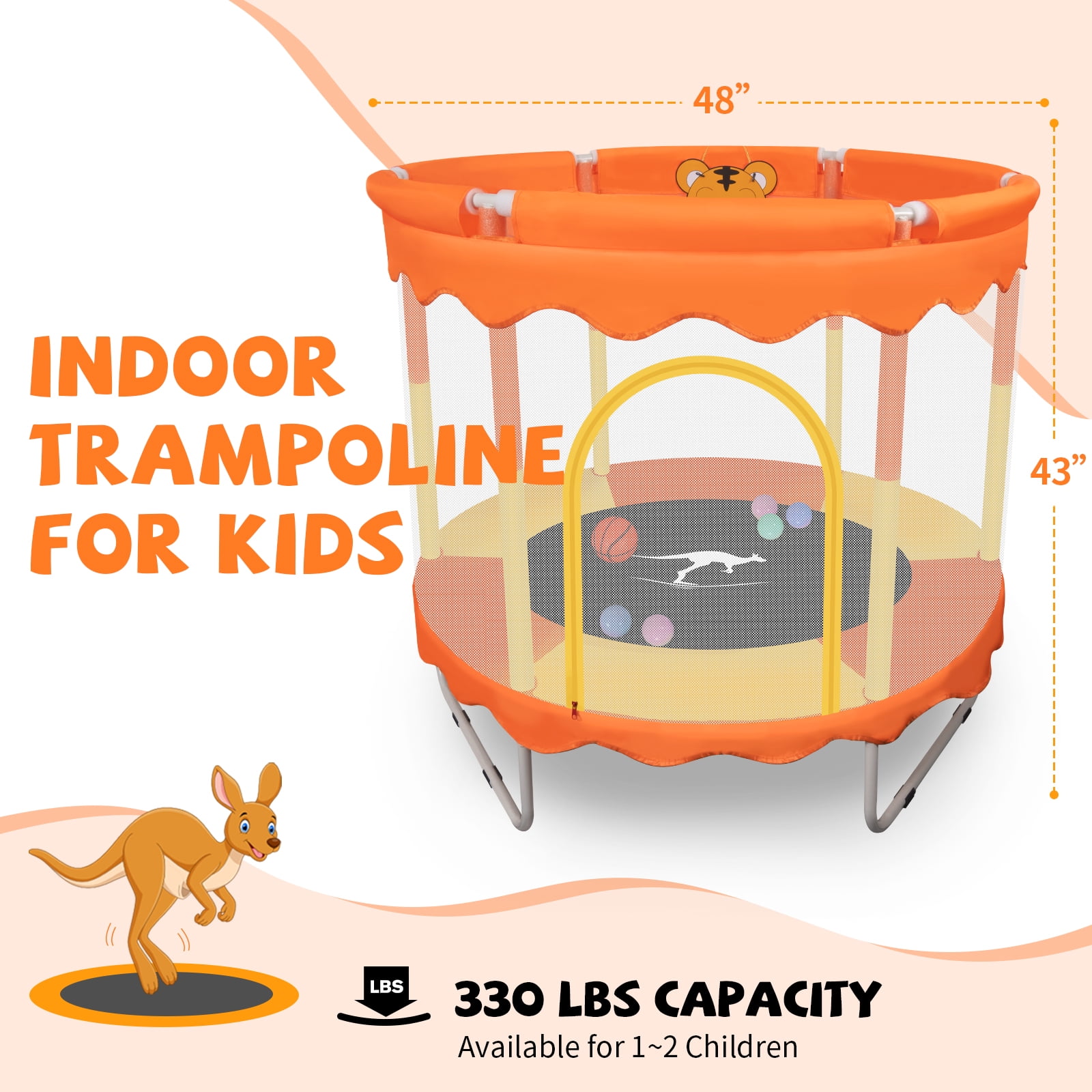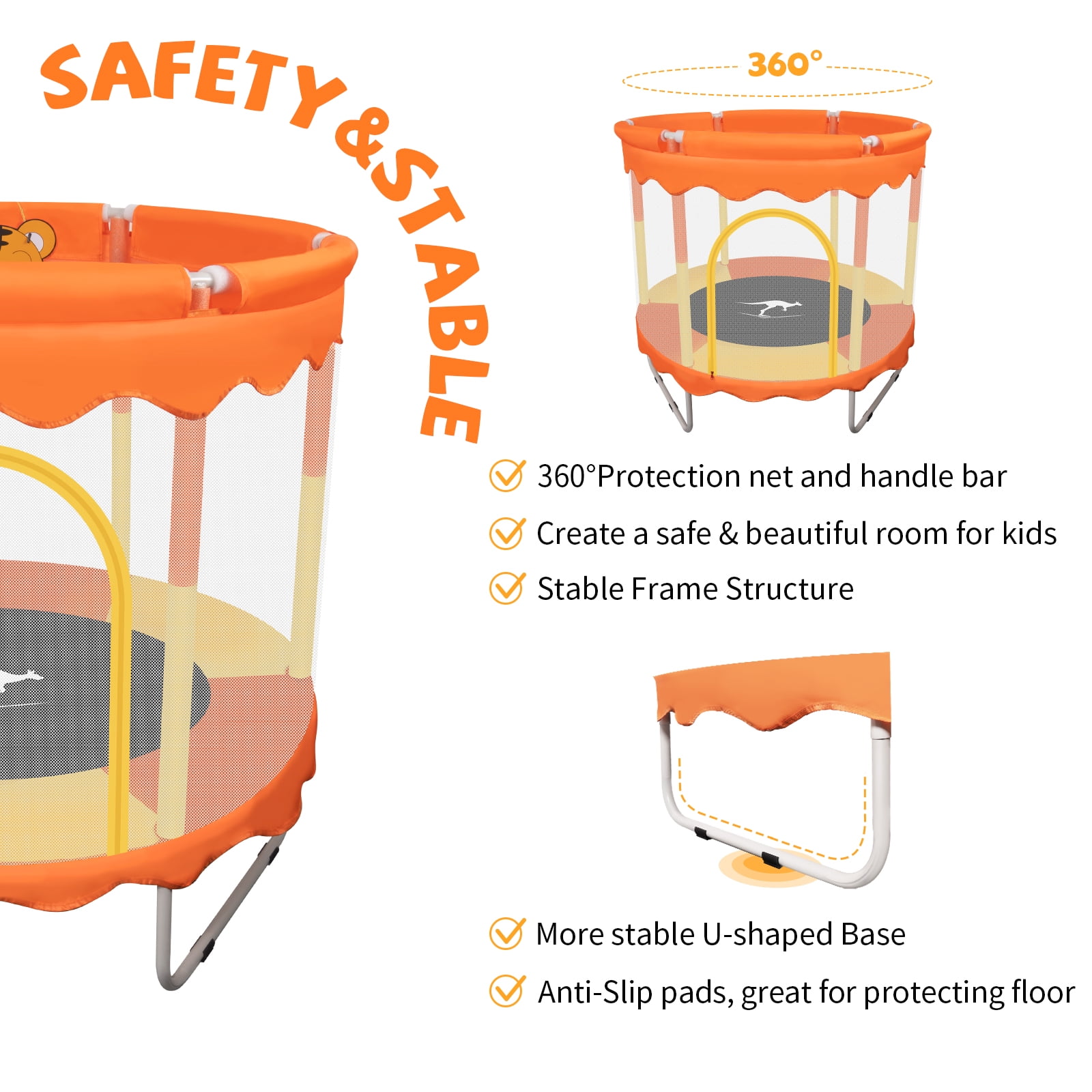 Kangaroo Hoppers 48″ Trampoline for Kids Toddler Recreation Trampoline with Basketball hoop, Enclosure Net, Orange