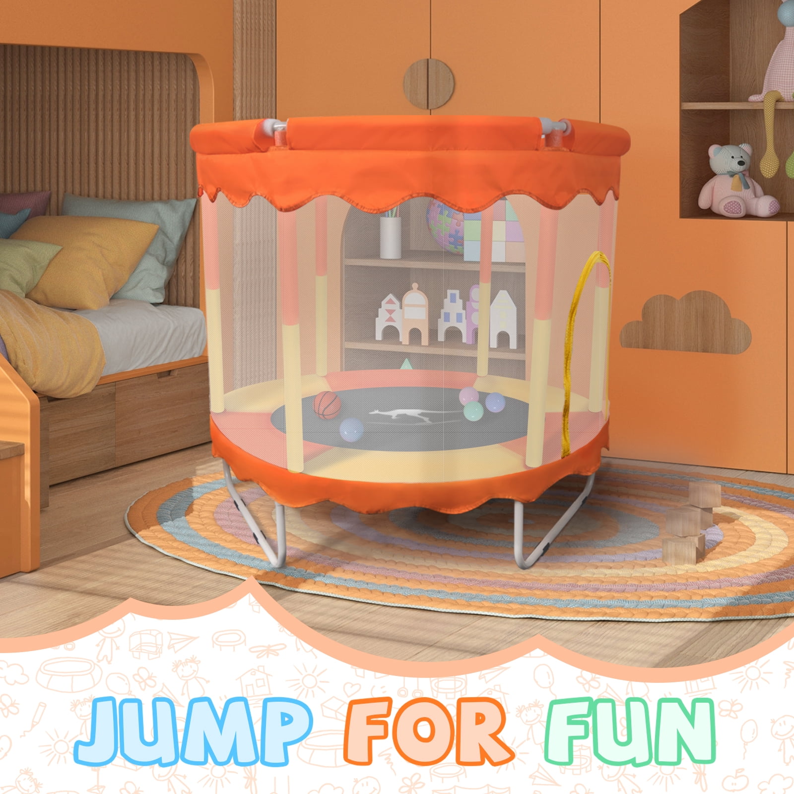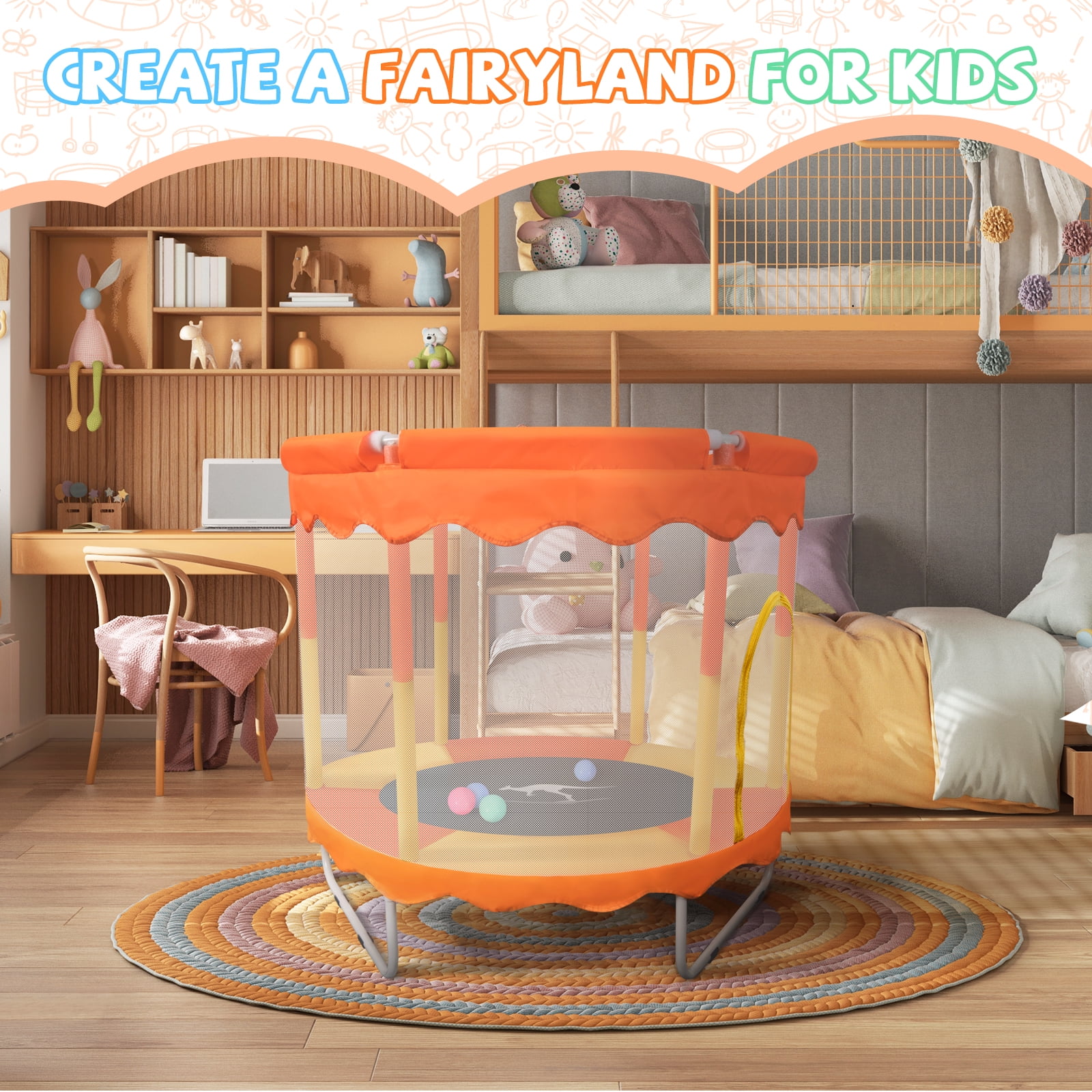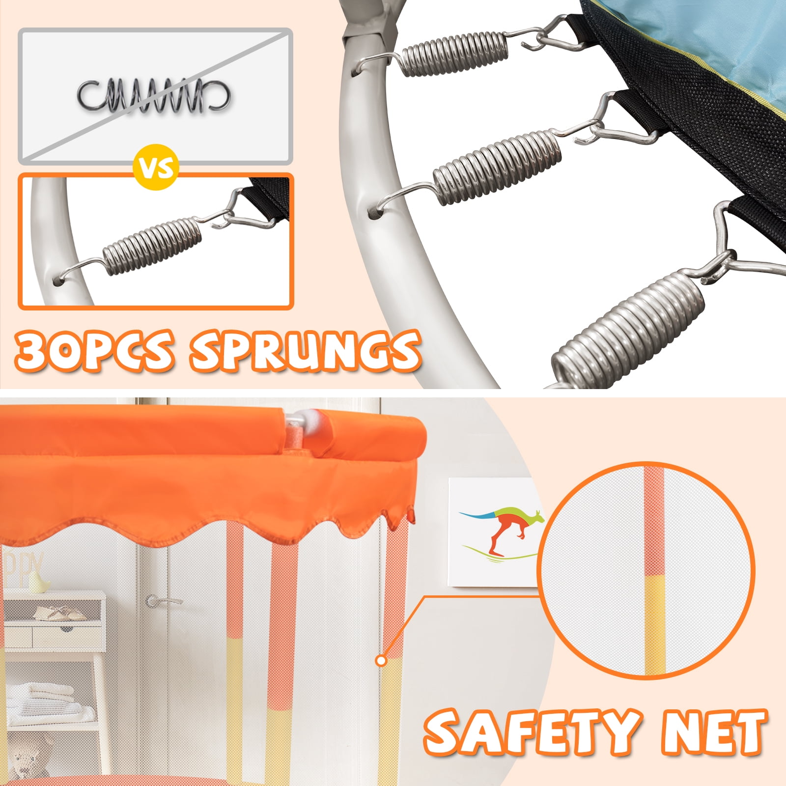 Kangaroo Hoppers 48″ Trampoline for Kids Toddler Recreation Trampoline with Basketball hoop, Enclosure Net, Orange