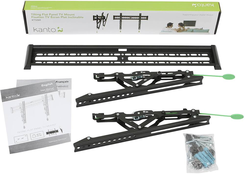 Kanto Tilting TV Wall Mount for Most 32″ – 60″ Flat-Panel TVs: Showcase your flat-panel TV in your bedroom or living room with this mount, which tilts up to 12° to help you find a great view. Tough steel construction with a powdercoat finish offers long-lasting use.